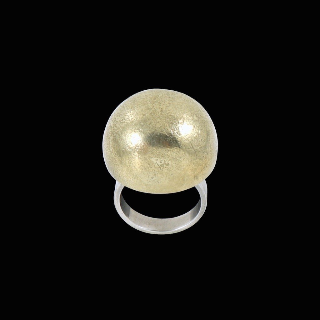 Hans Hansen. Ring i Sterling sølv, delvist lueforgyldt. 1960s.