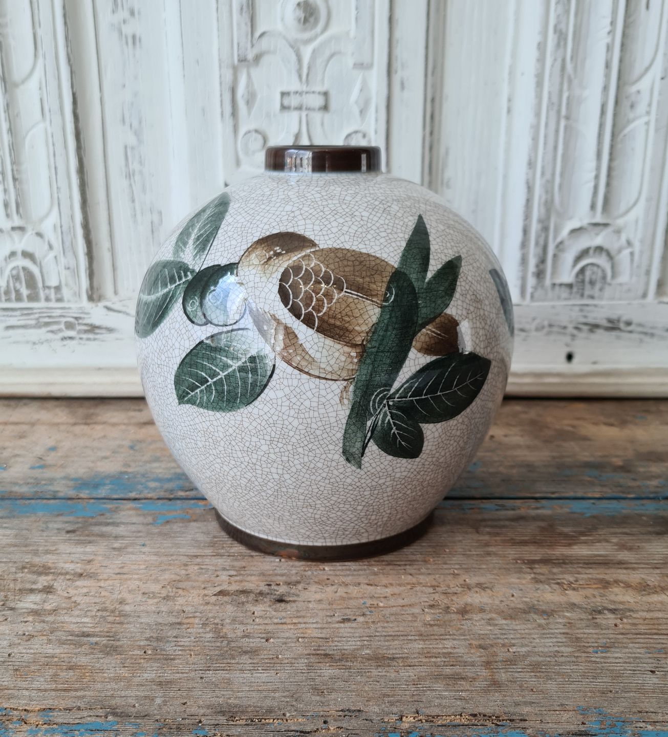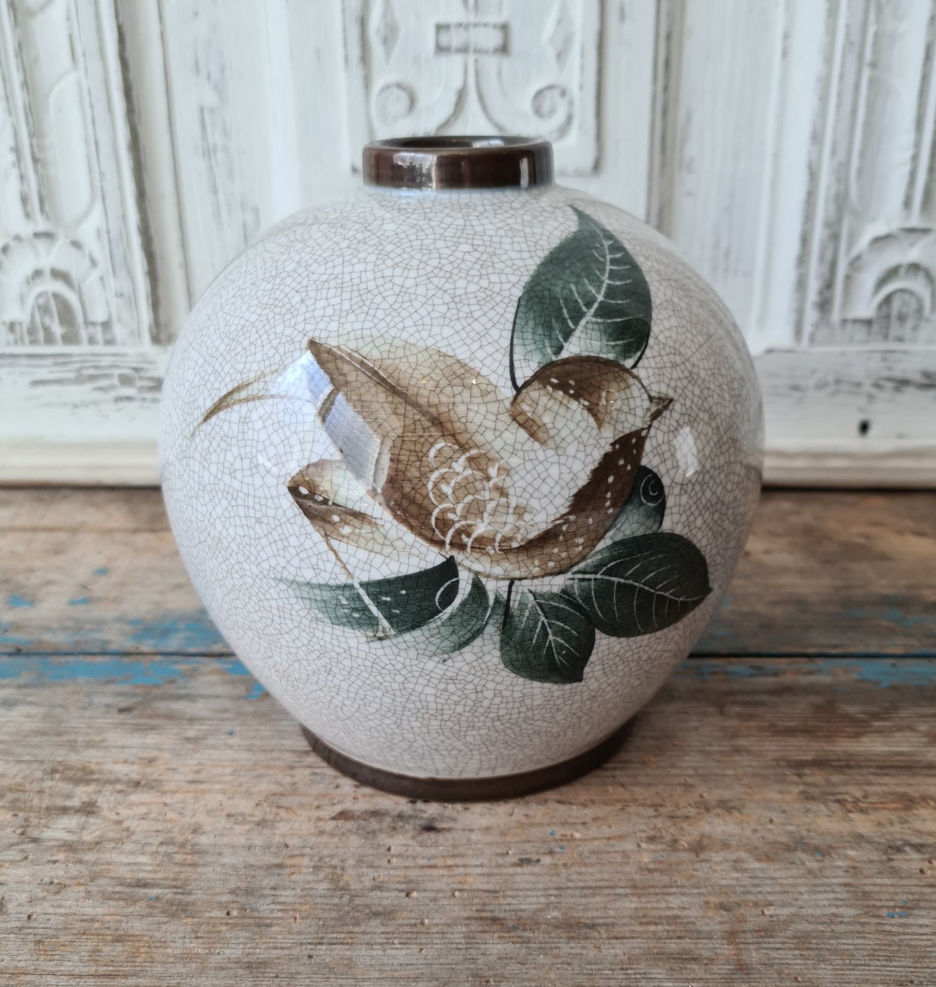 B&G Craquelé vase dekoreretmed fugle no. 38K/4 - 16 cm.