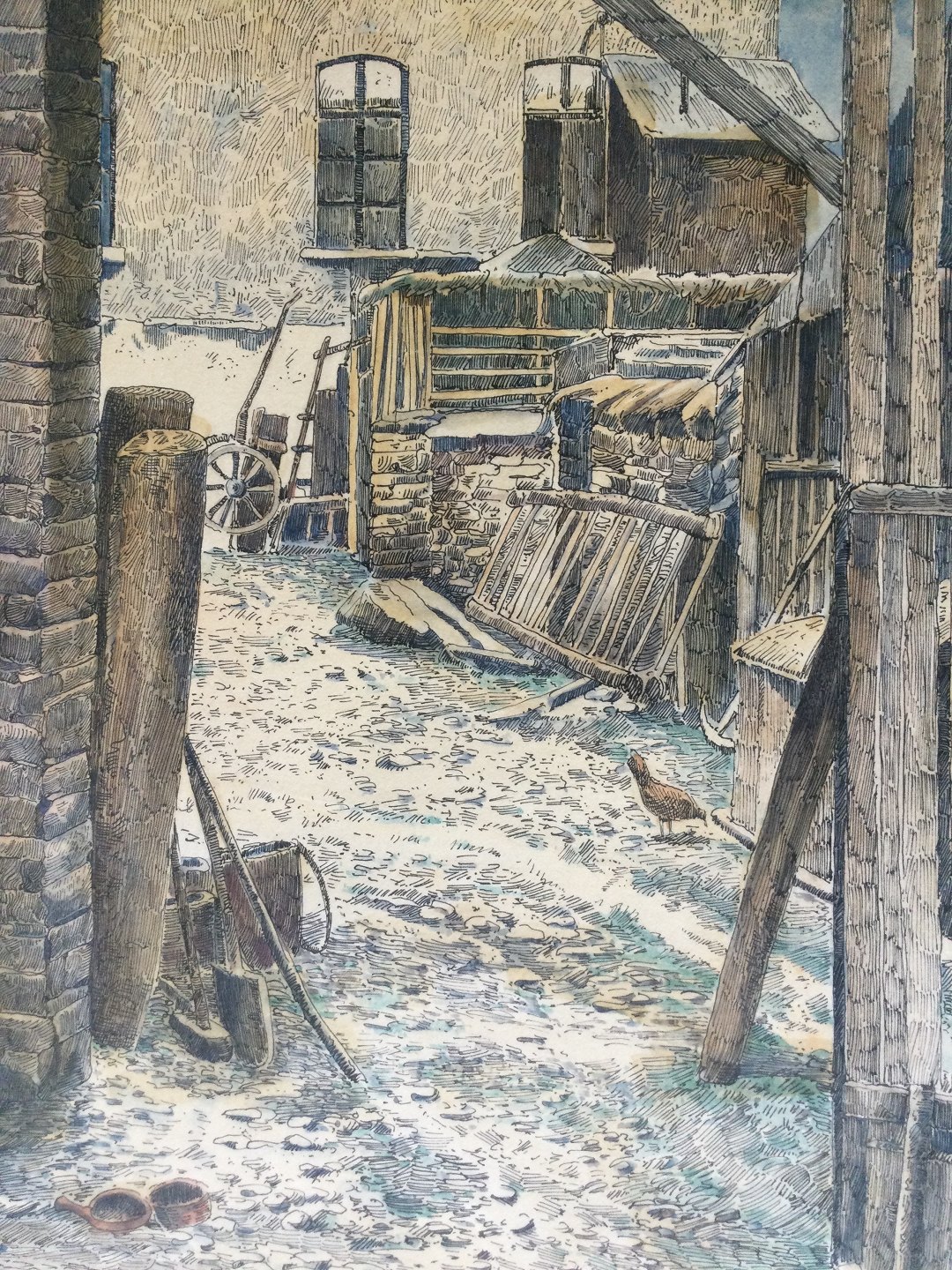 Tegning af John Bergling - Gårdeksteriør 1922.