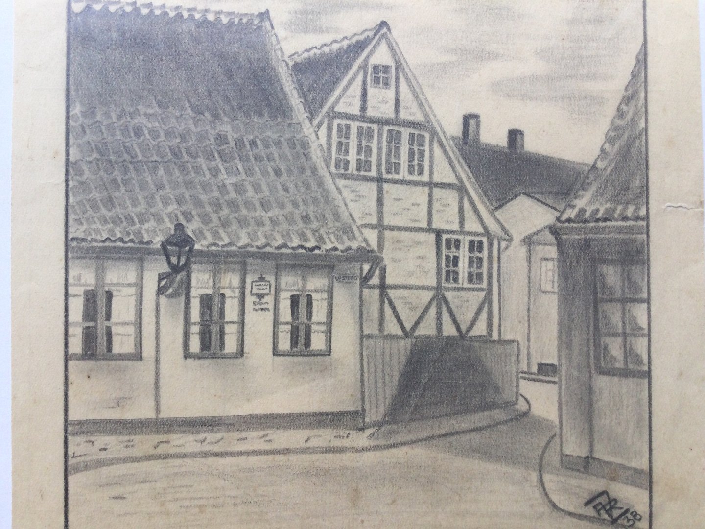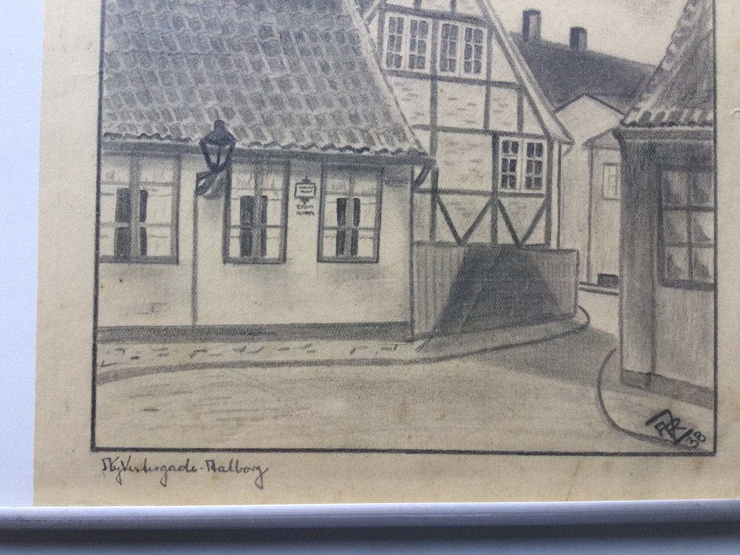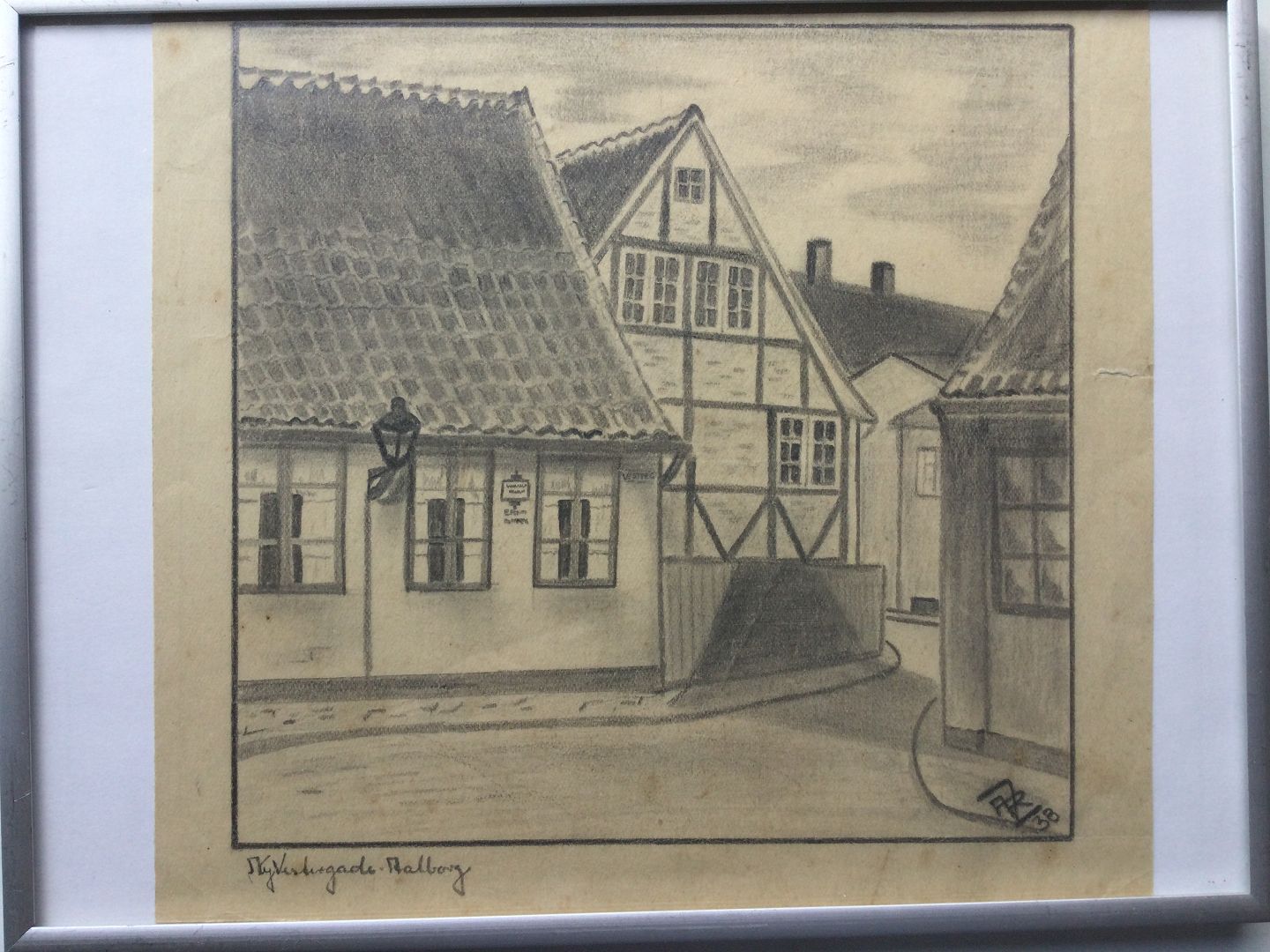 Tegning 1938 - Parti fra Ny Vestergade i Aalborg.