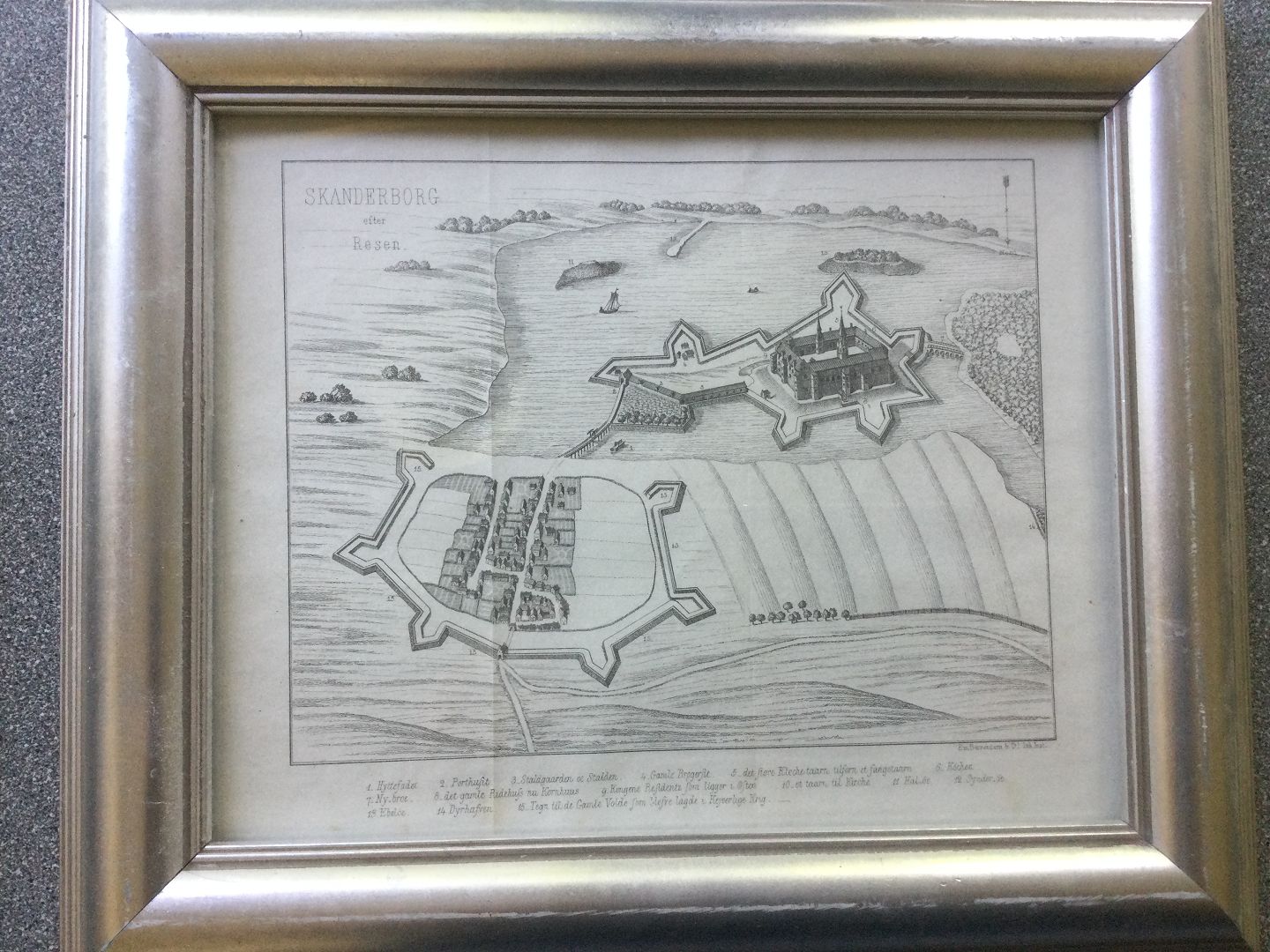 Litografi - Skanderborg by efter Peder Hansen Resens kobberstik 1677.