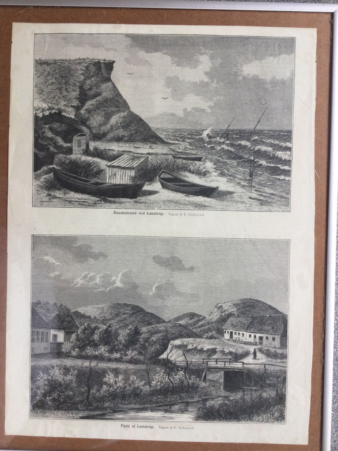 2 xylografier i samme ramme efter tegninger af F. Sehested 1882.