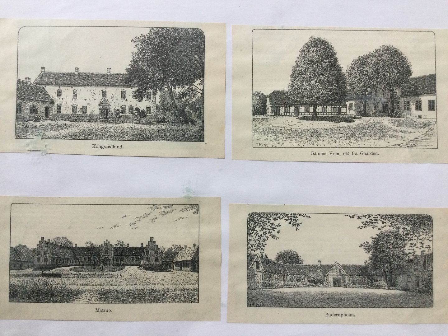 4 xylografier i samme ramme - 4 jyske herregårde.