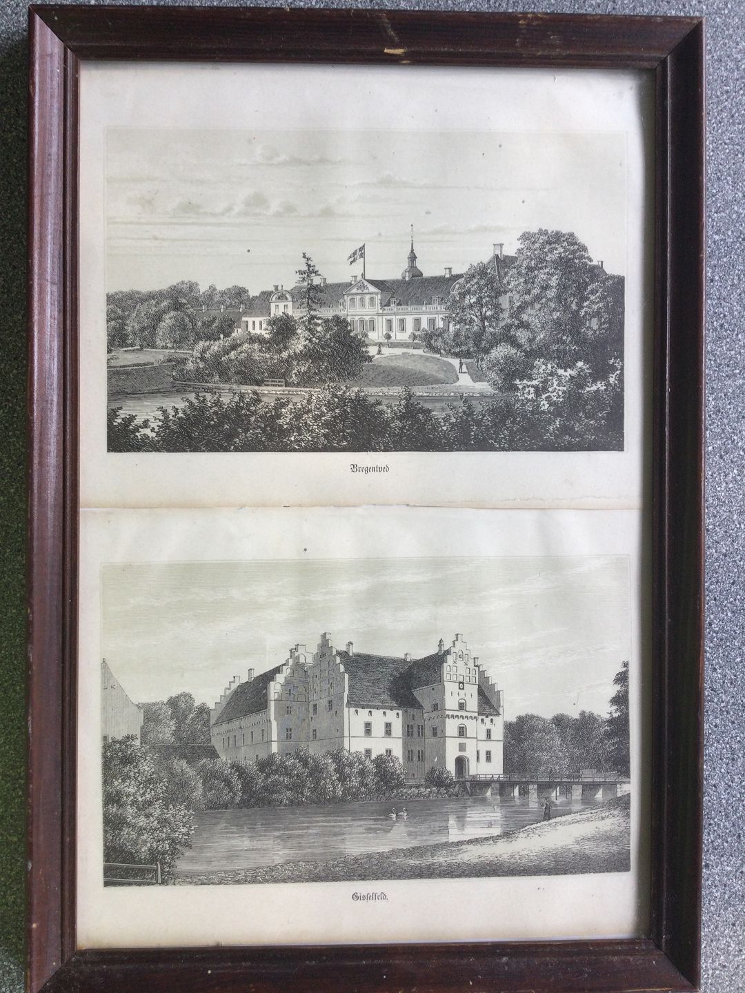 2 litografier af Sjællandske Herregårde i samme ramme.