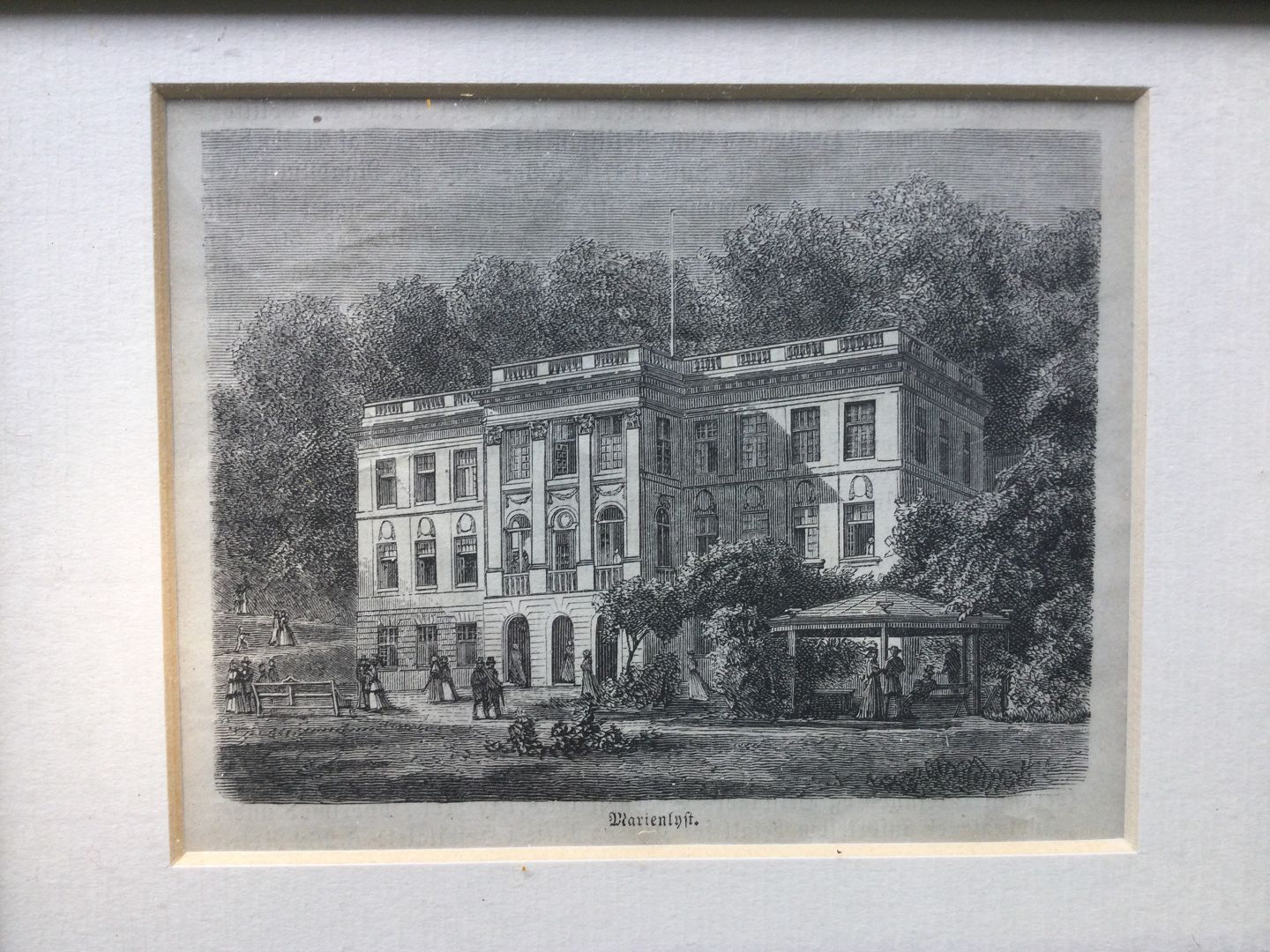 Text available in Danish: Xylografi - Marienlyst Slot, Helsingør.