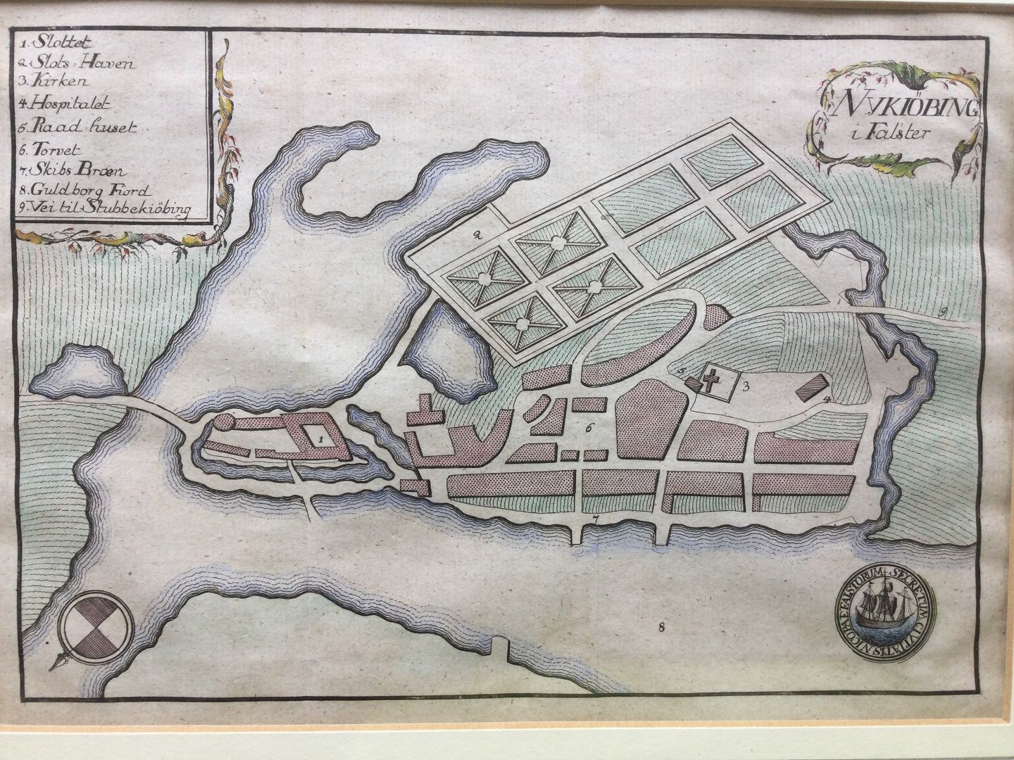 Gammelt kobberstik af Erik Pontoppidan - Kort over Nykøbing Falster - fra Danske Atlas 1767.