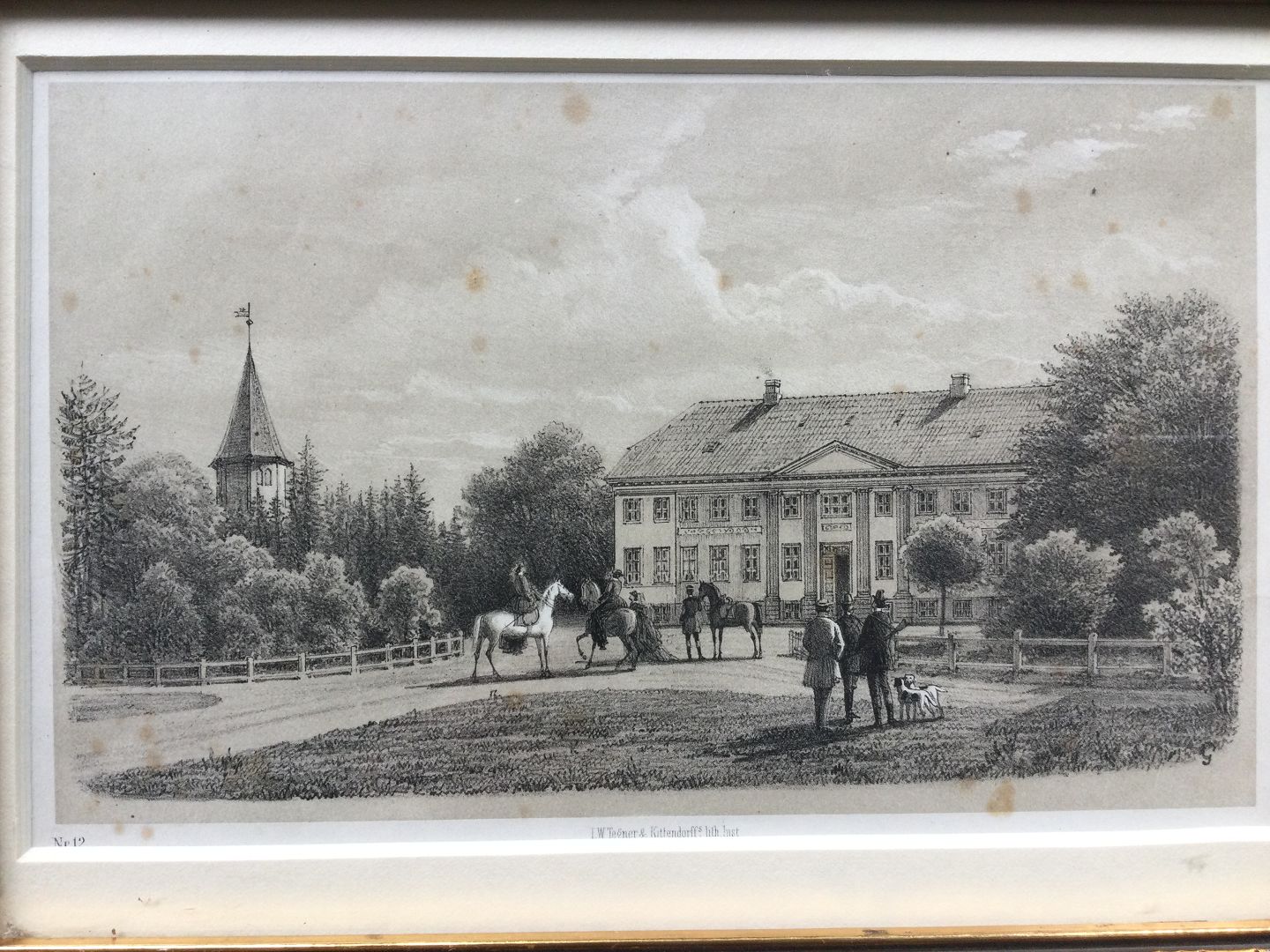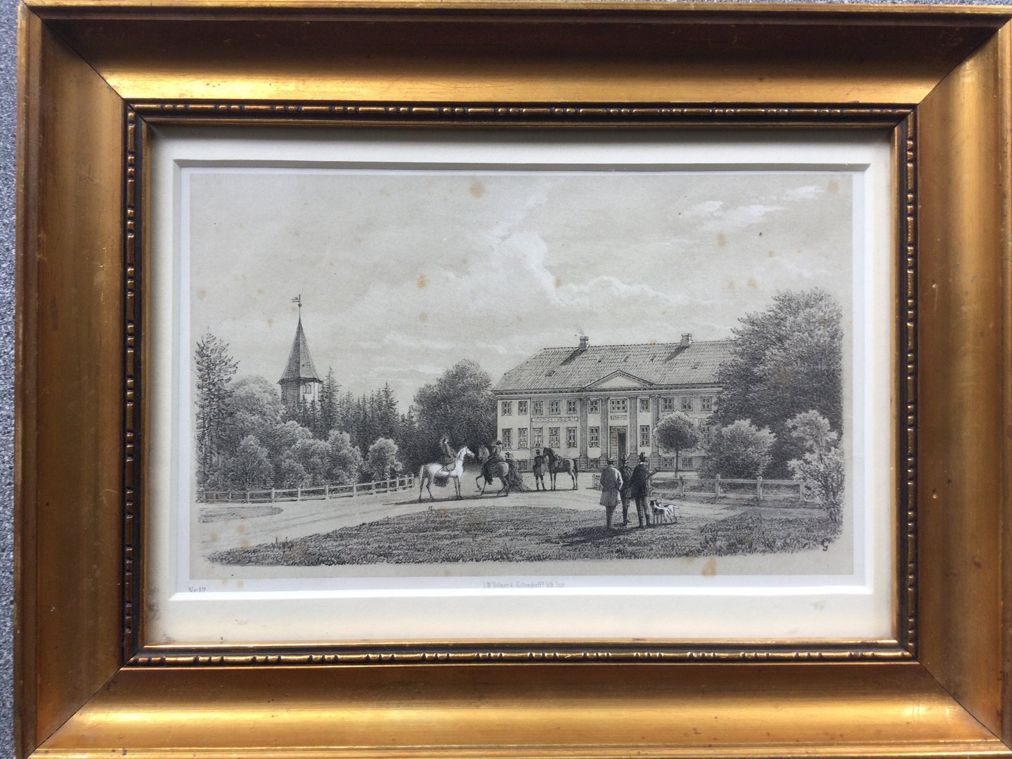 Text available in Danish: Litografi af Herregården Engestofte på Lolland 1867.