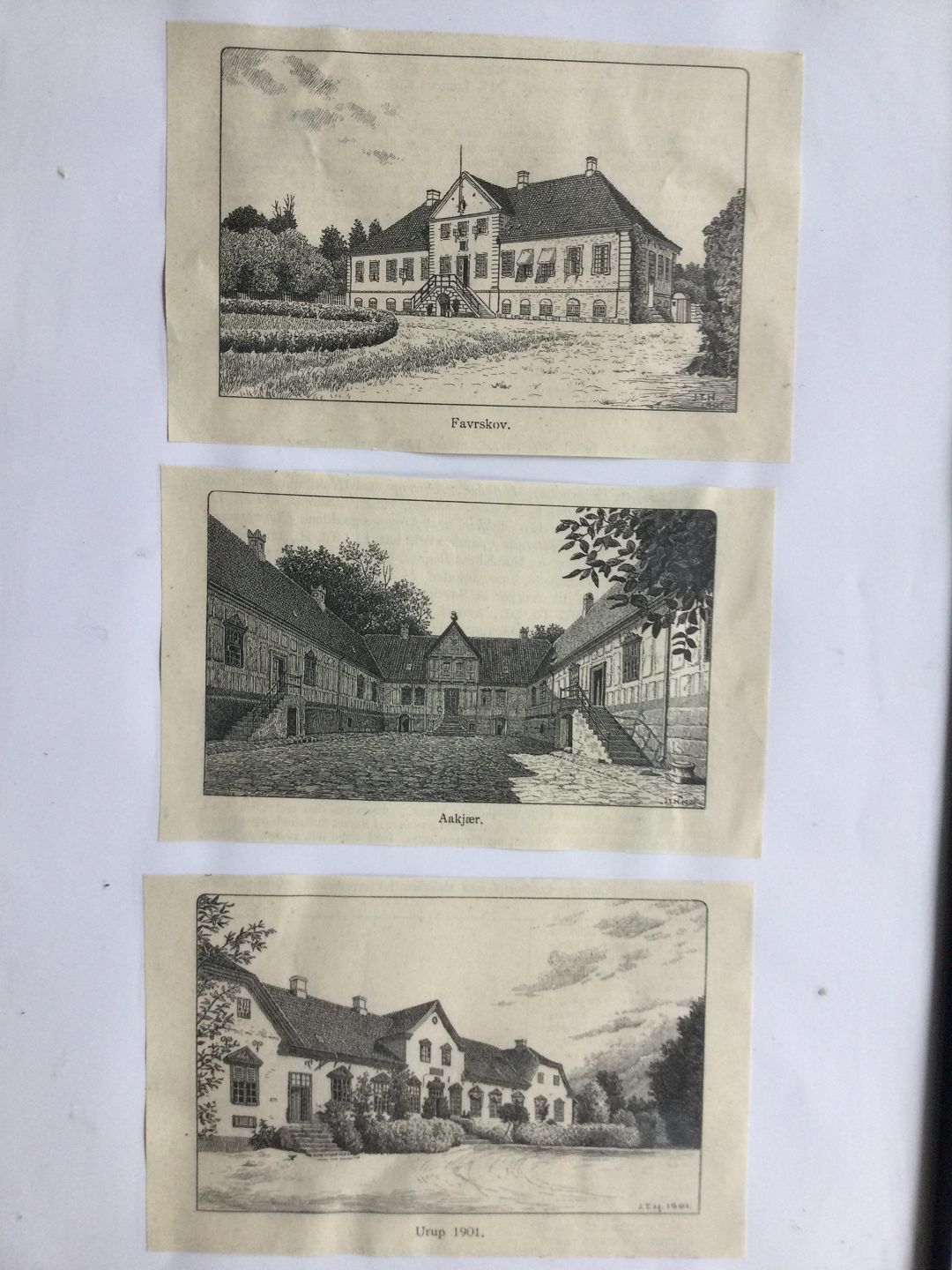 Text available in Danish: Xylografier af J.T. Hansen - Herregårdene Favrskov Hovedgård, Aakær Gods og Urup Hovedgård i Jylland 1901.