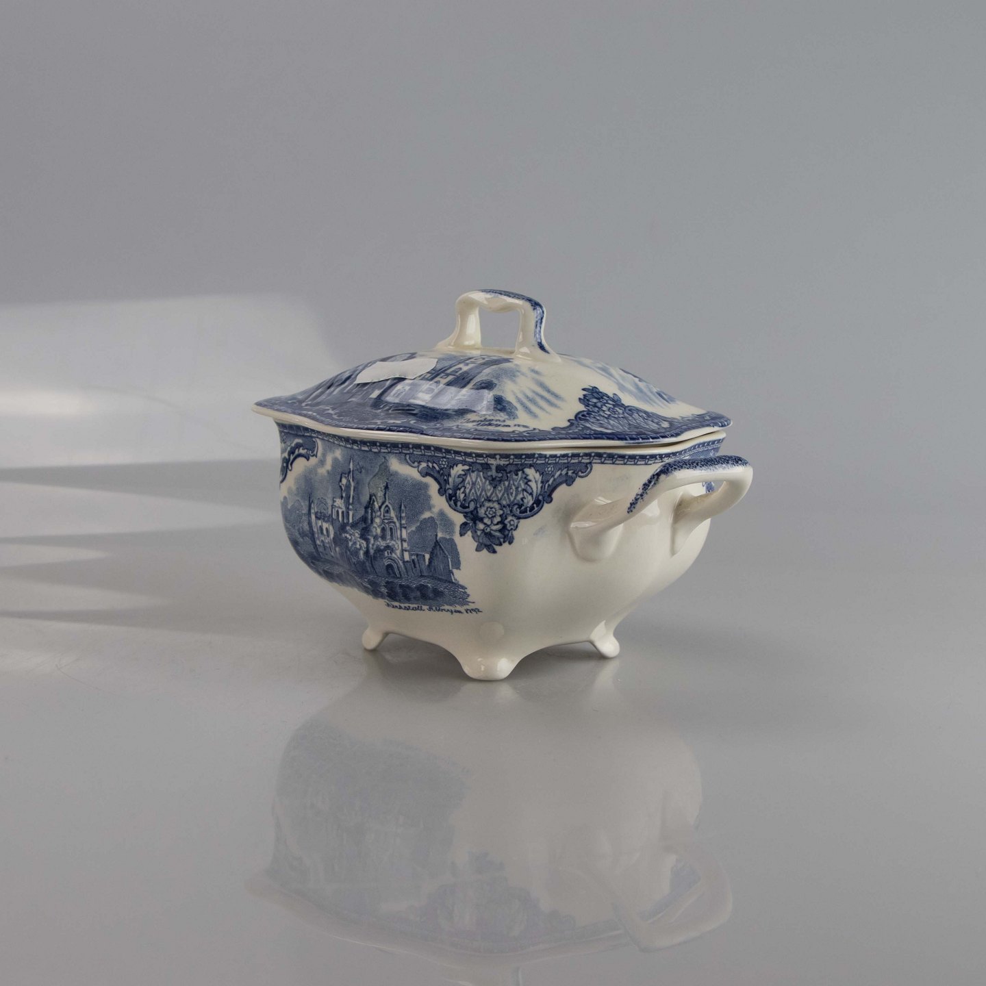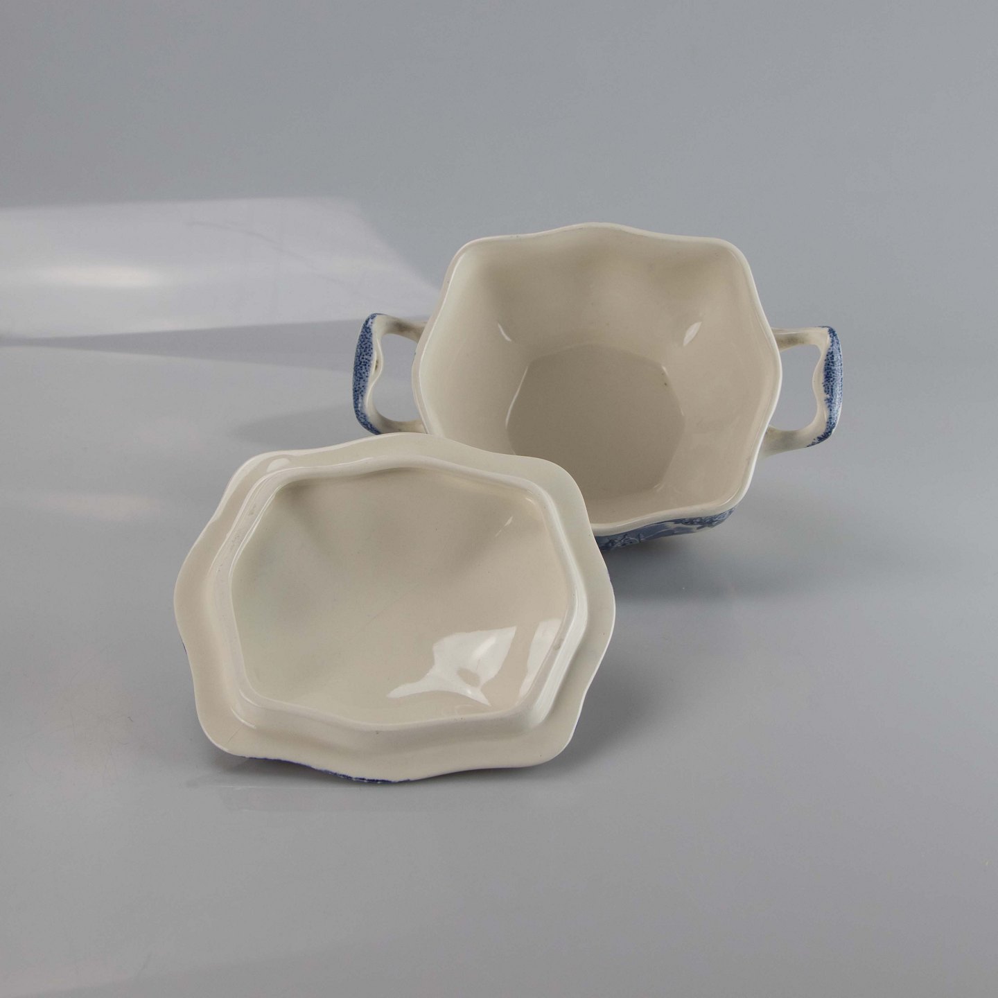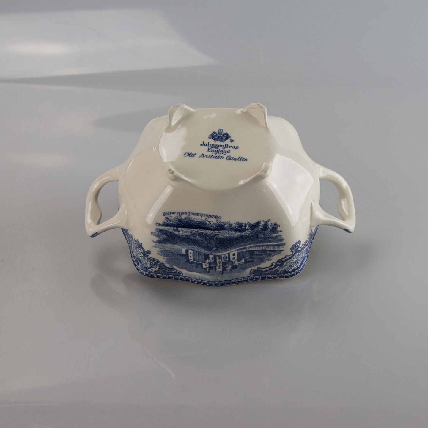 Stor sukkerskål i engelsk fajance fra stellet Old Britain Castles blue