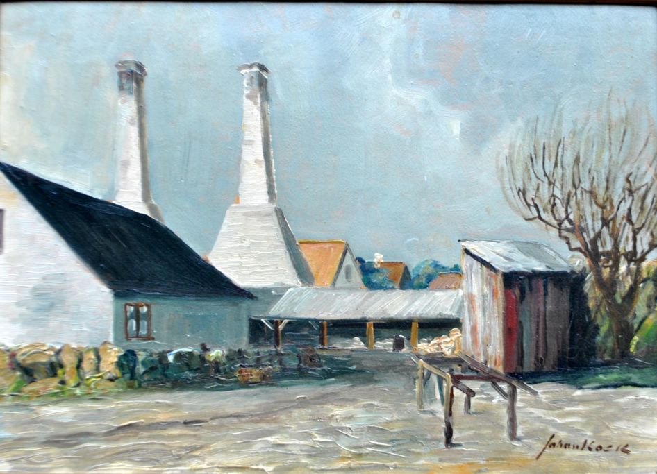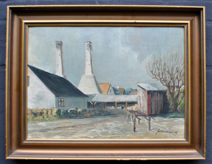 Koch, Johan (1869 - 1944) Denmark: Smokehauses Ærøskøbing. Oil on cardboard. Signed. 33 x 45 cm.