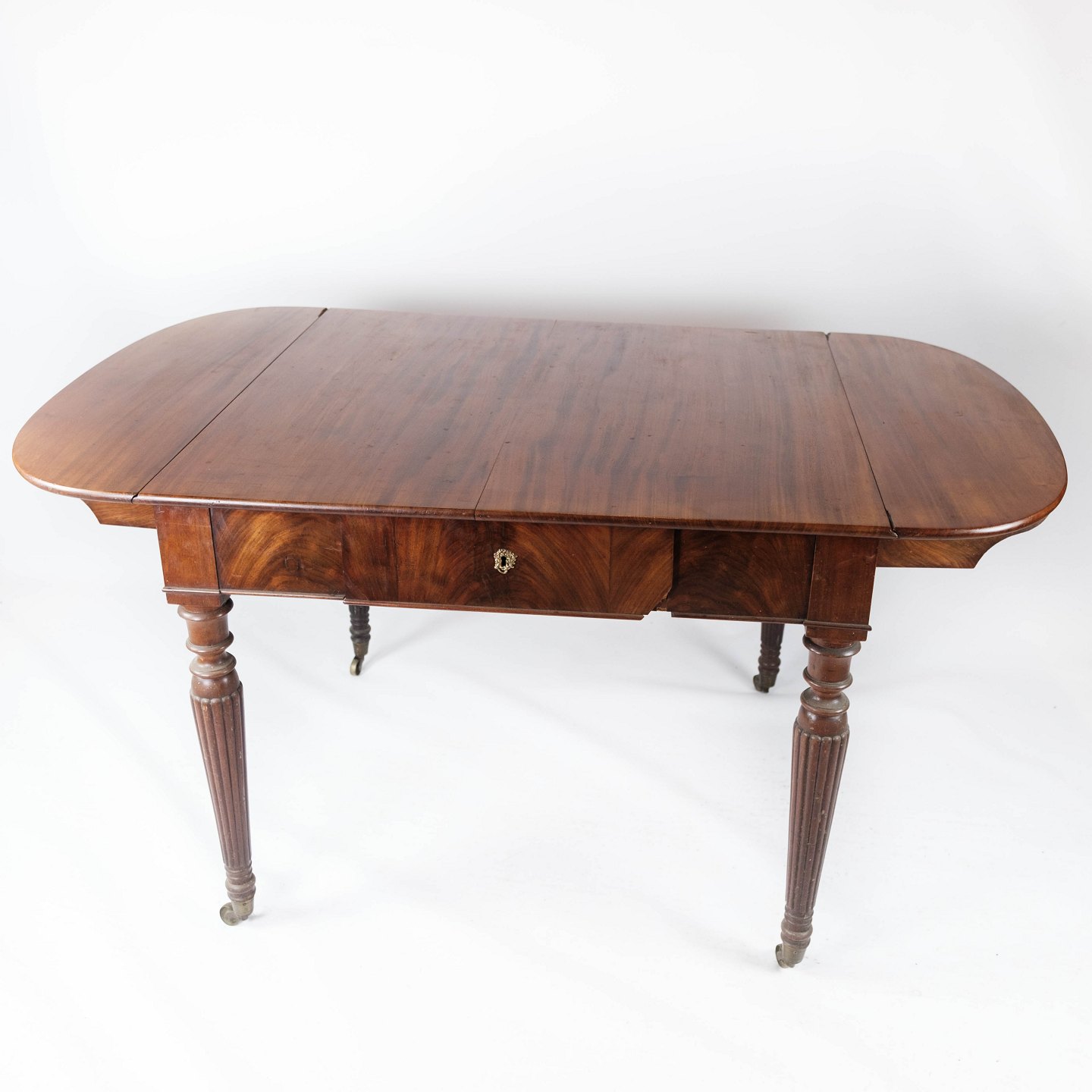 Spisebord af mahogni med udtræksplader, i flot antik stand fra 1840erne.