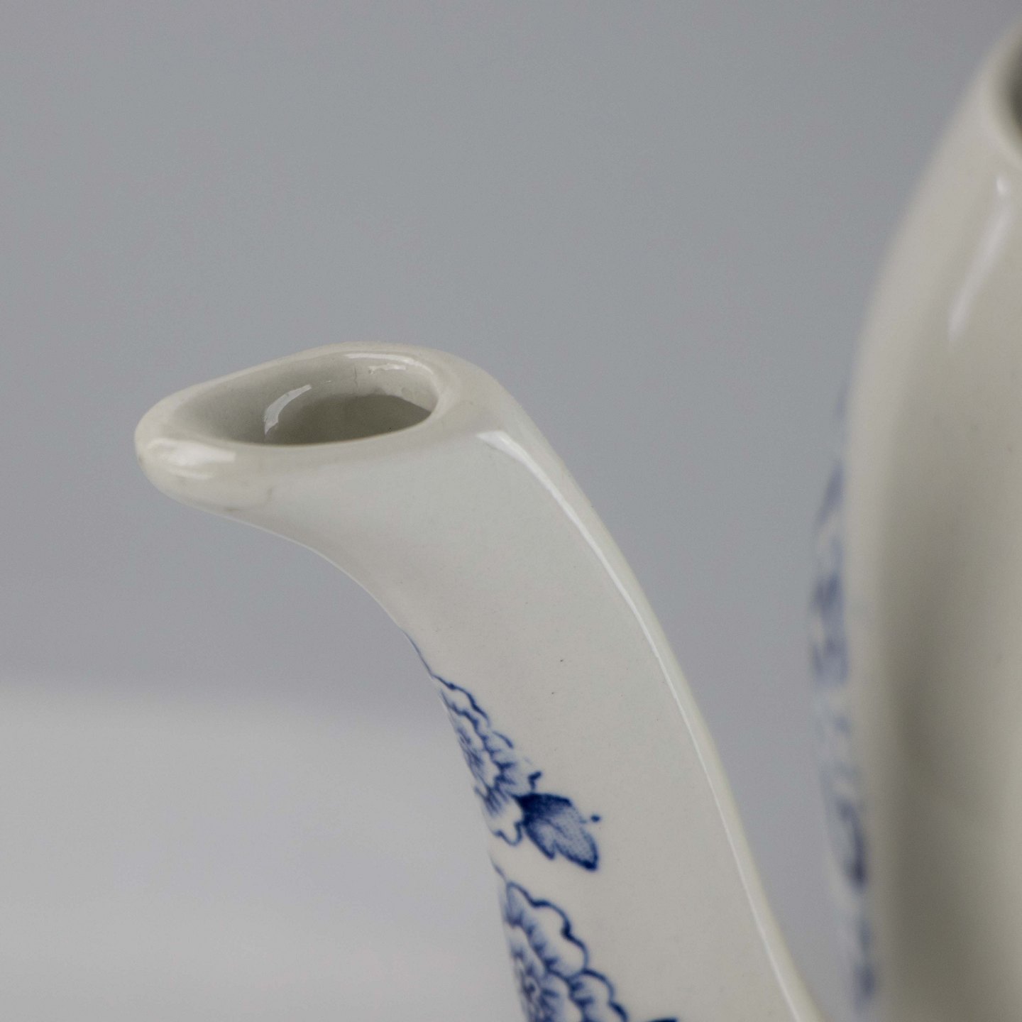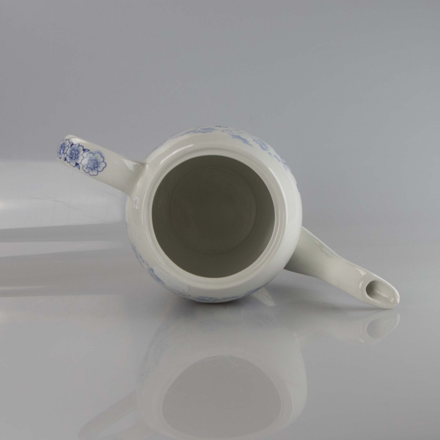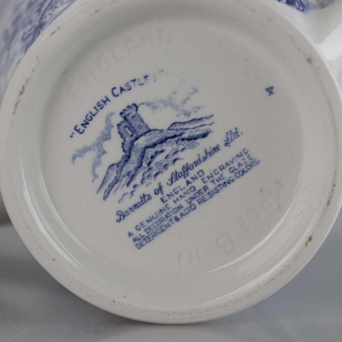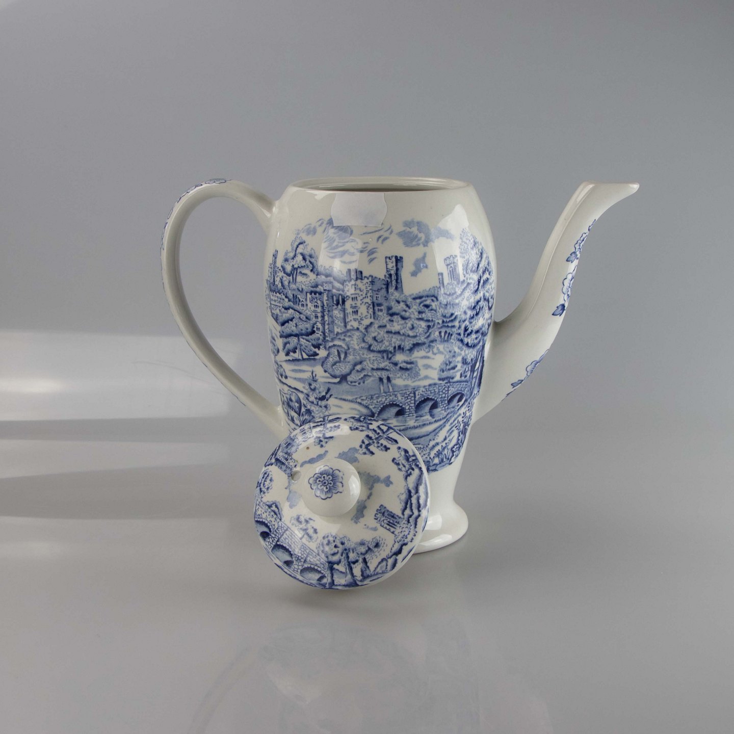 Kande i lys fajance med blådekoreret slotsmotiv.