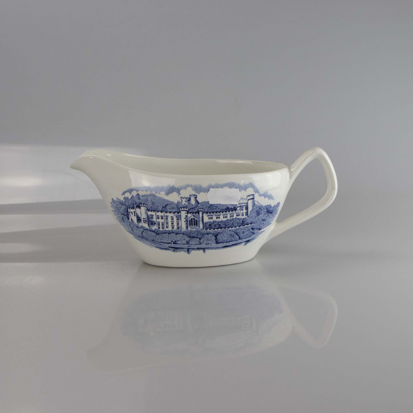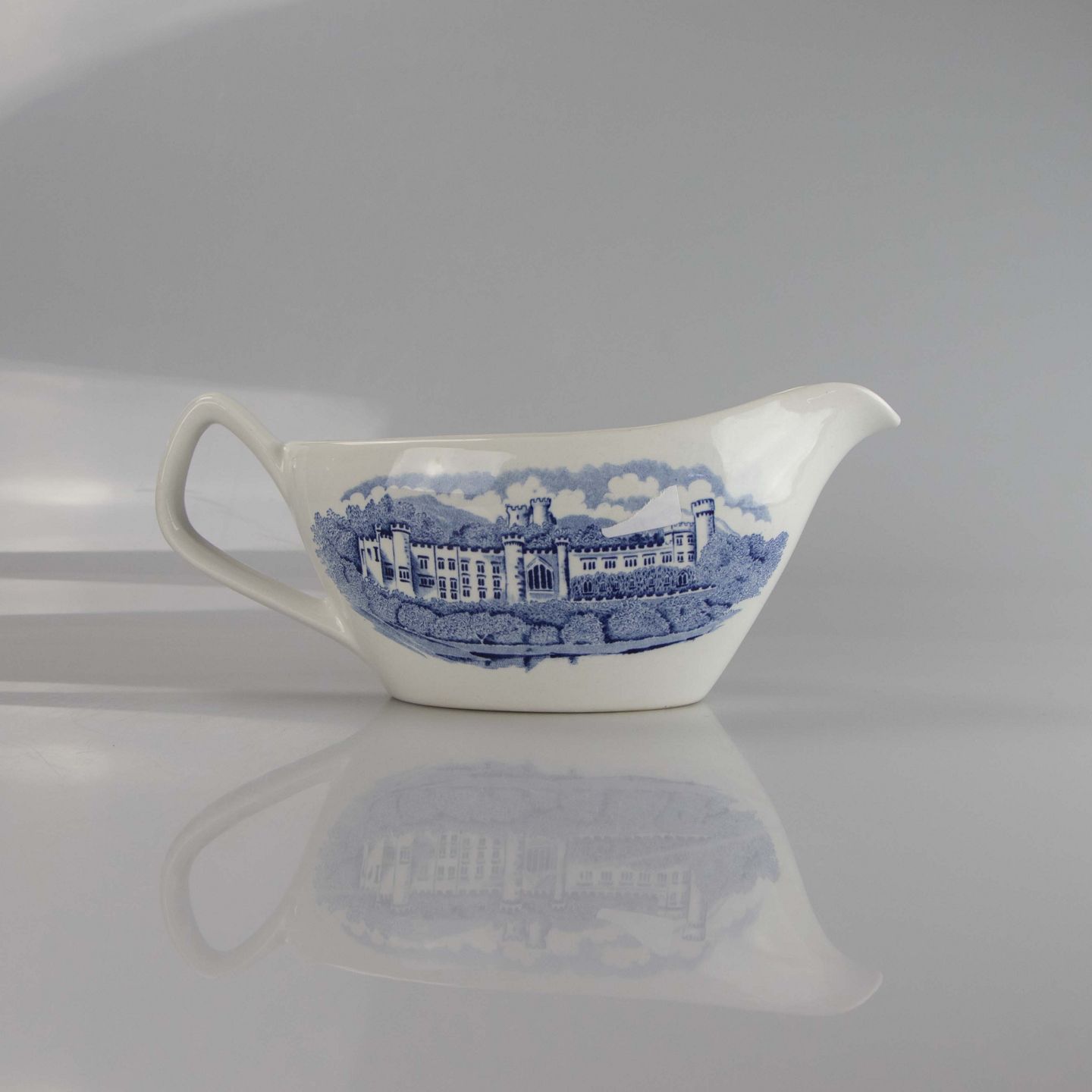 Sovsekande i lys fajance med blådekoreret slotsmotiv.