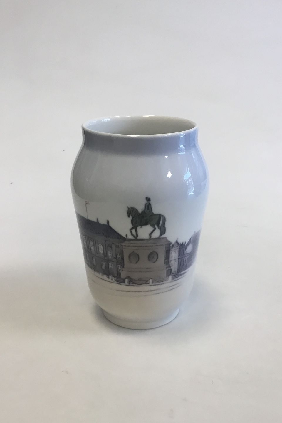 Royal Copenhagen Vase med Rytterstatuen af Frederik V på Amalienborg Slotsplads No 4566. Måler 17 cm(6 11/16 in.)