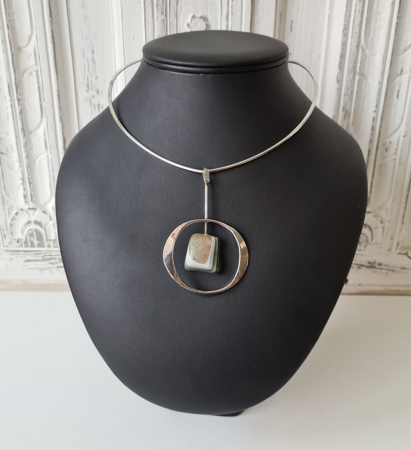 Tone Vigeland vintage halsring i sterlingsølv med grøn sten