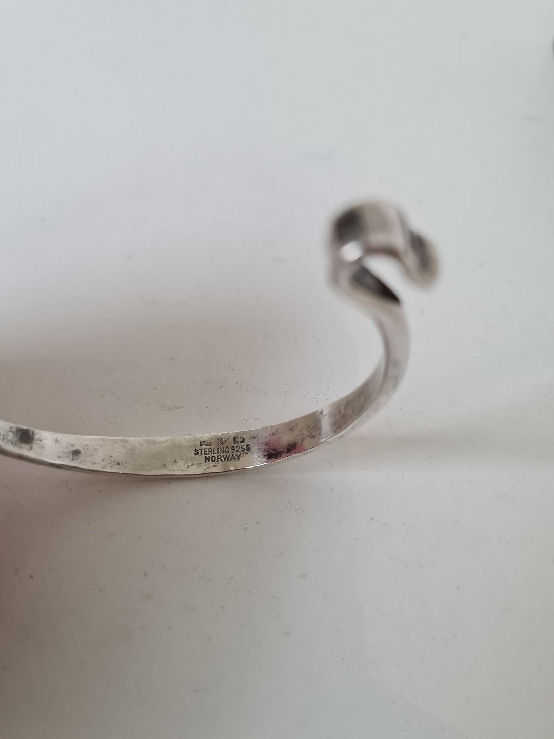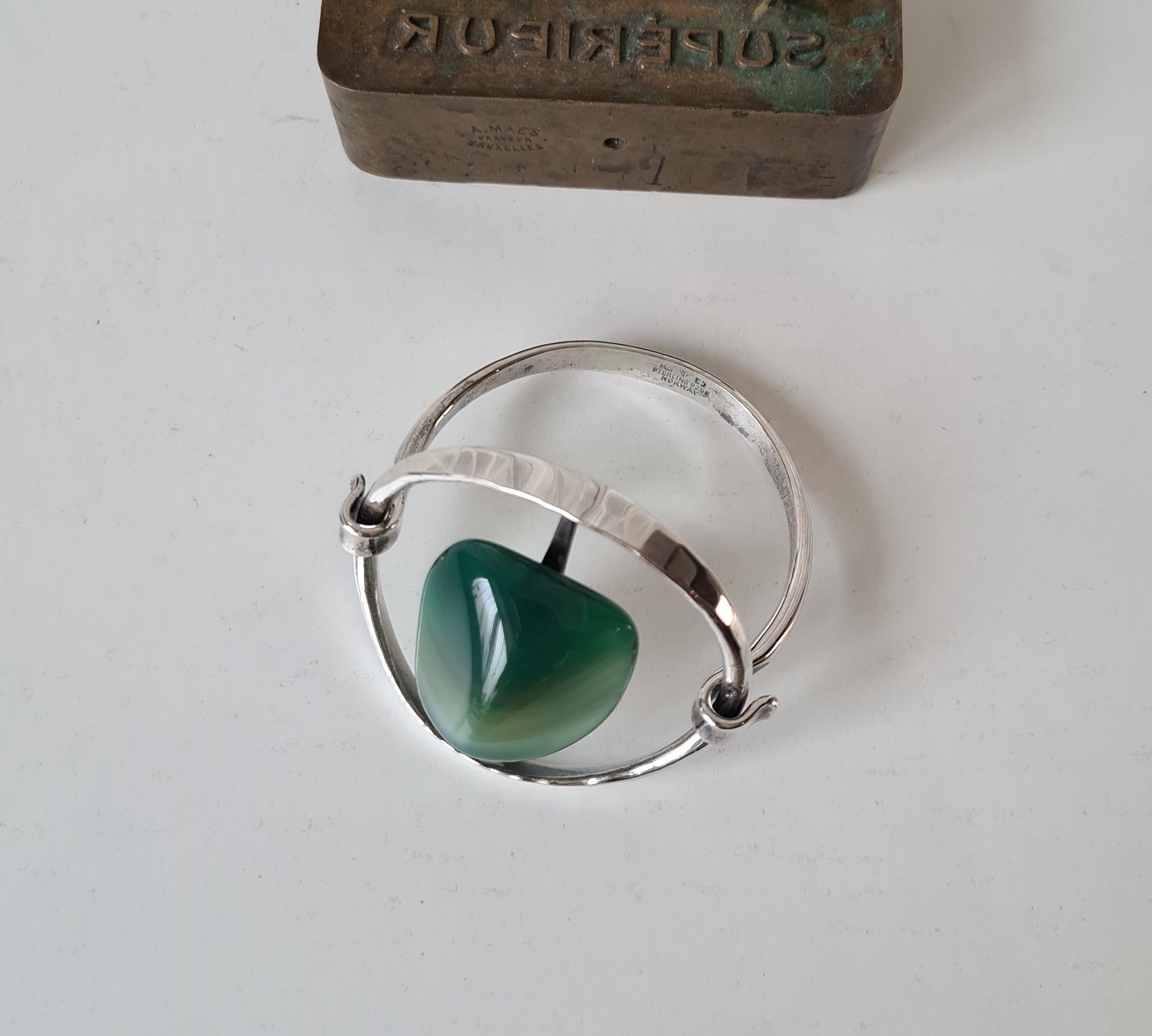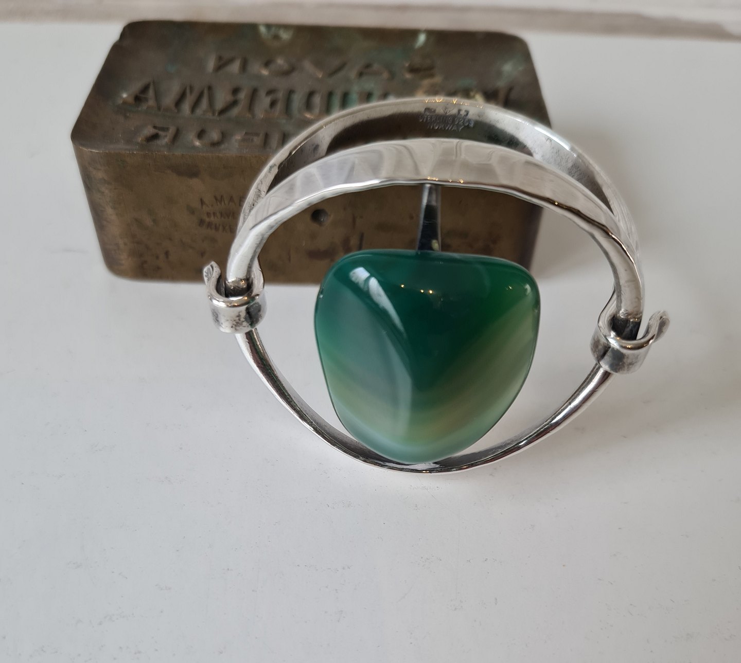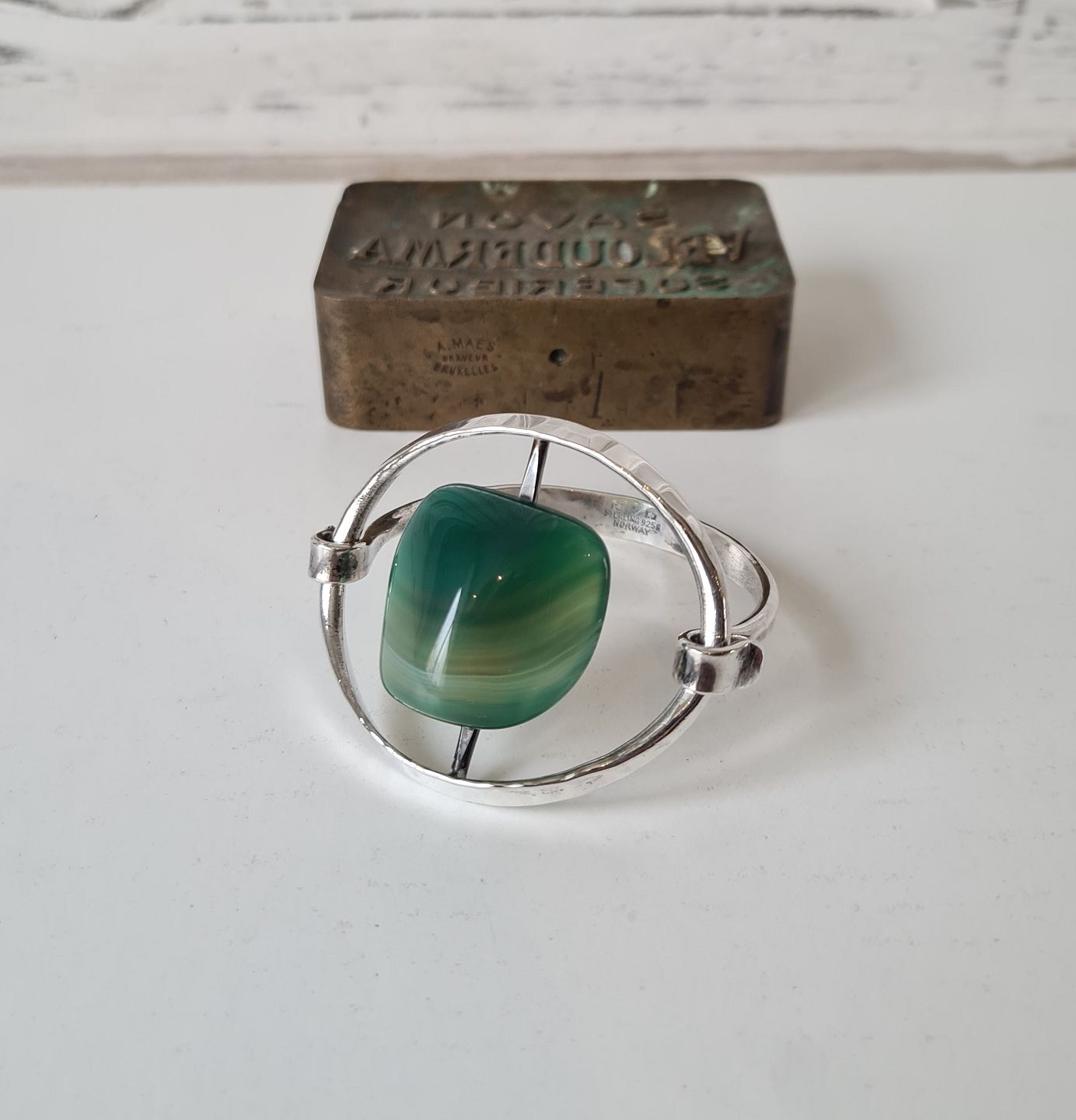Tone Vigeland vintage armring i sterlingsølv med grøn sten