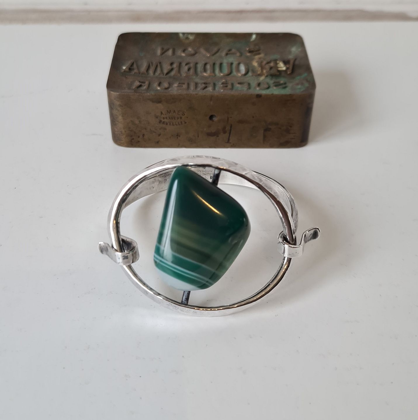 Tone Vigeland vintage armring i sterlingsølv med grøn sten