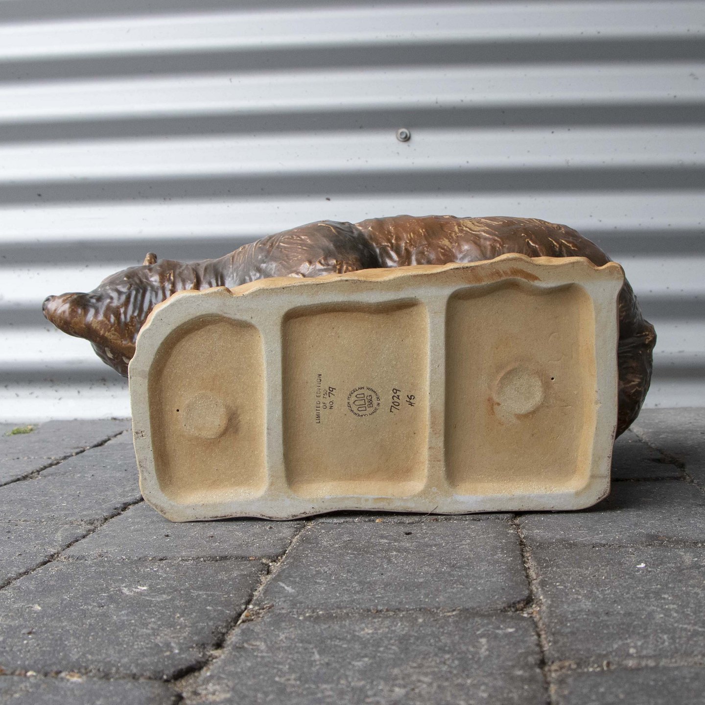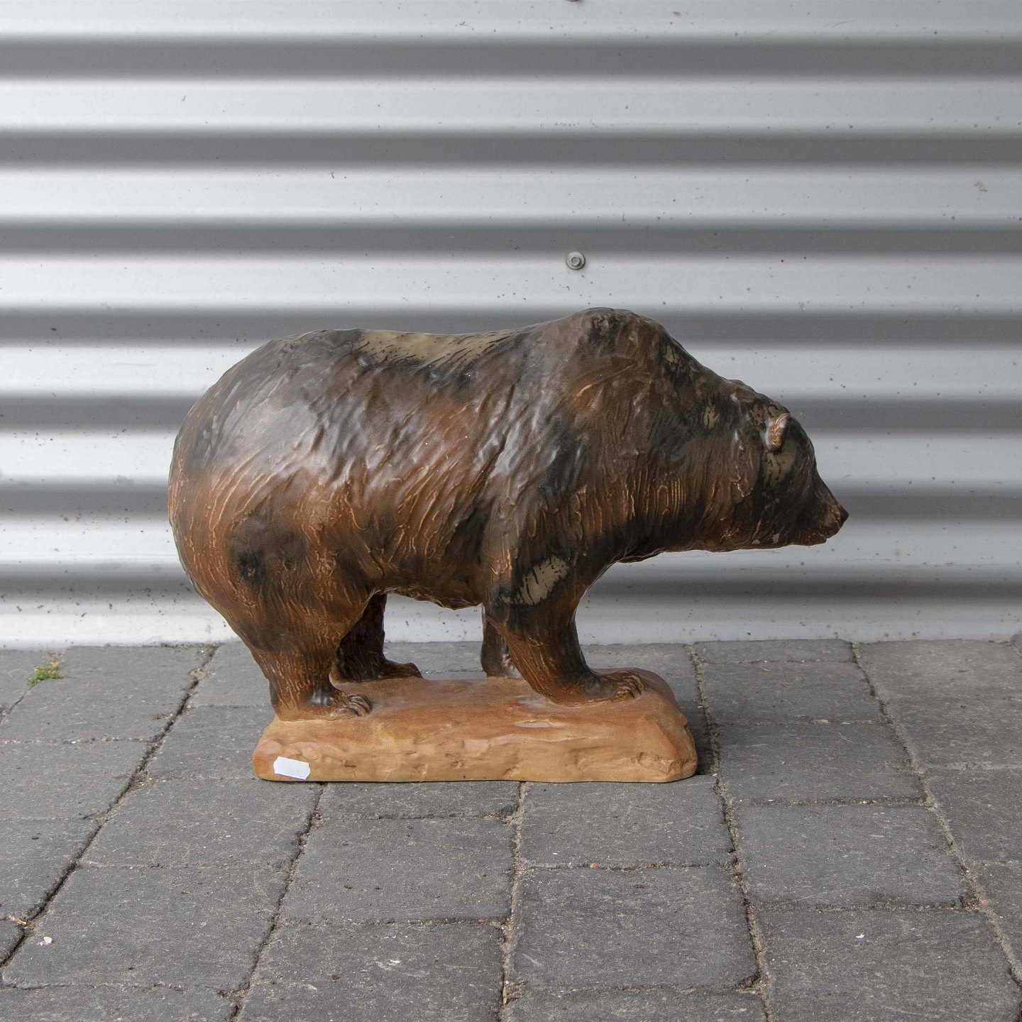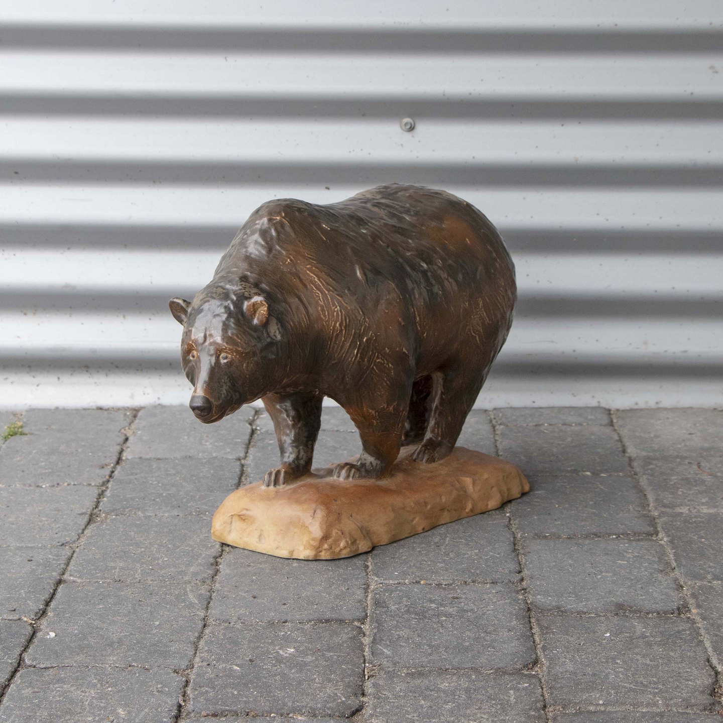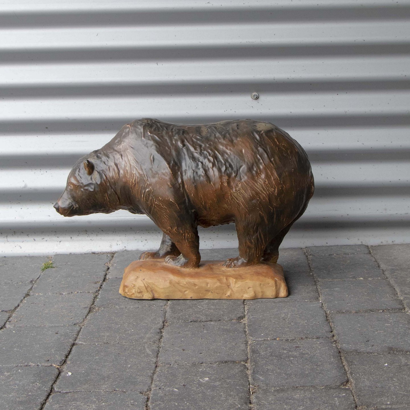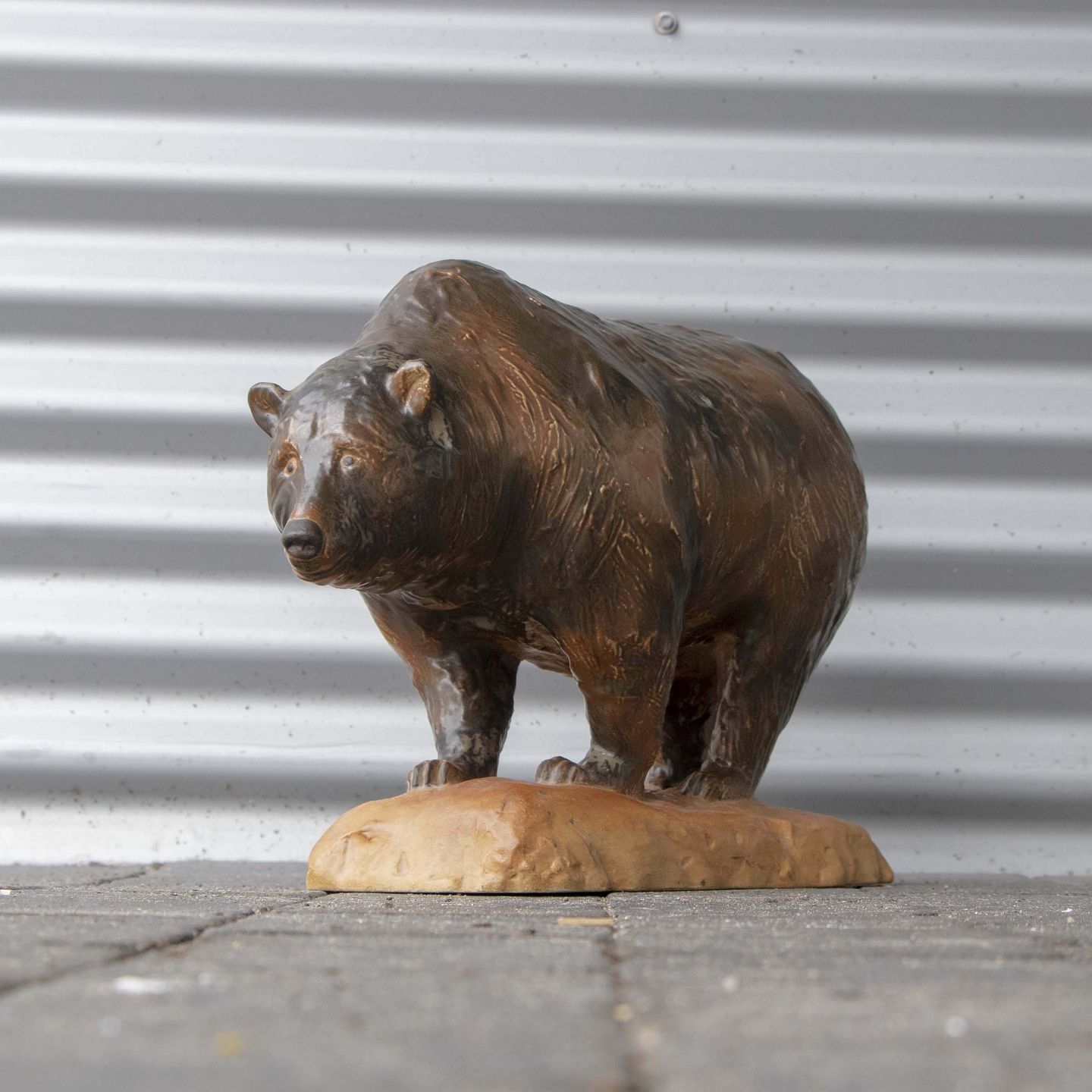 Stor figur i stentøj med motiv af stående brun bjørn nr. 7029