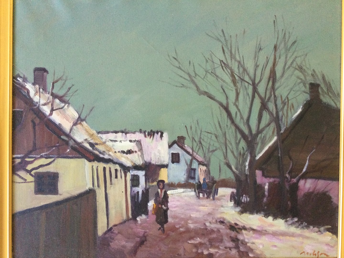 Maleri af Willy Nilsson - Landsbygade, vinter.