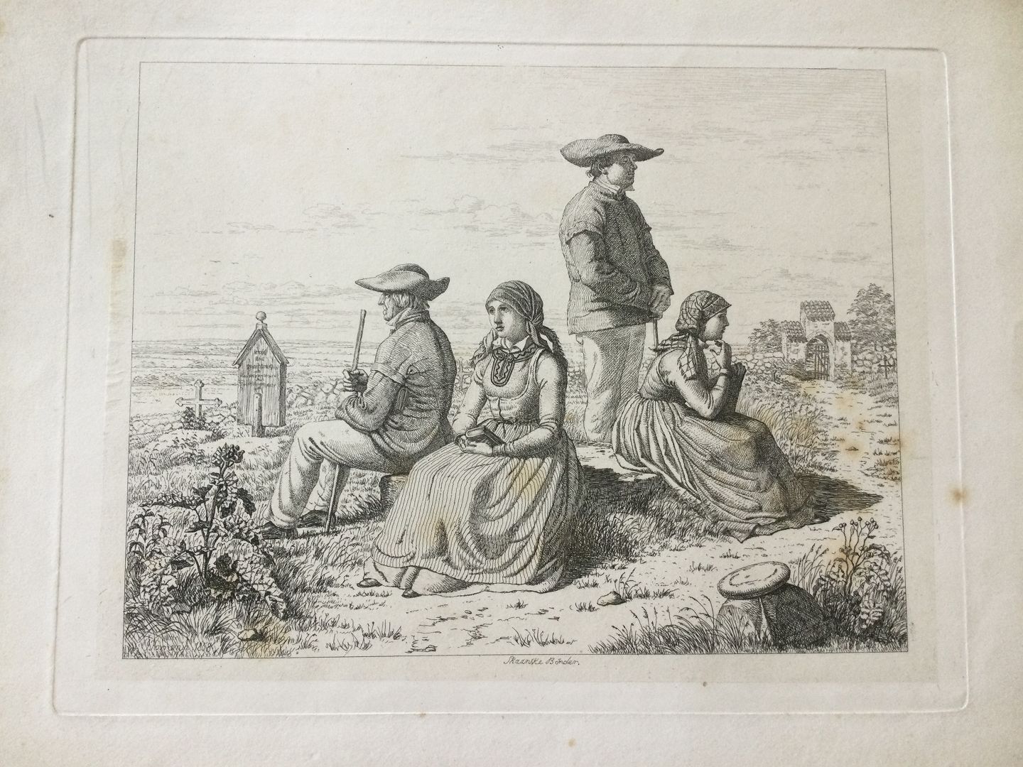 Skånske Bønder på Kirkegården 1858.