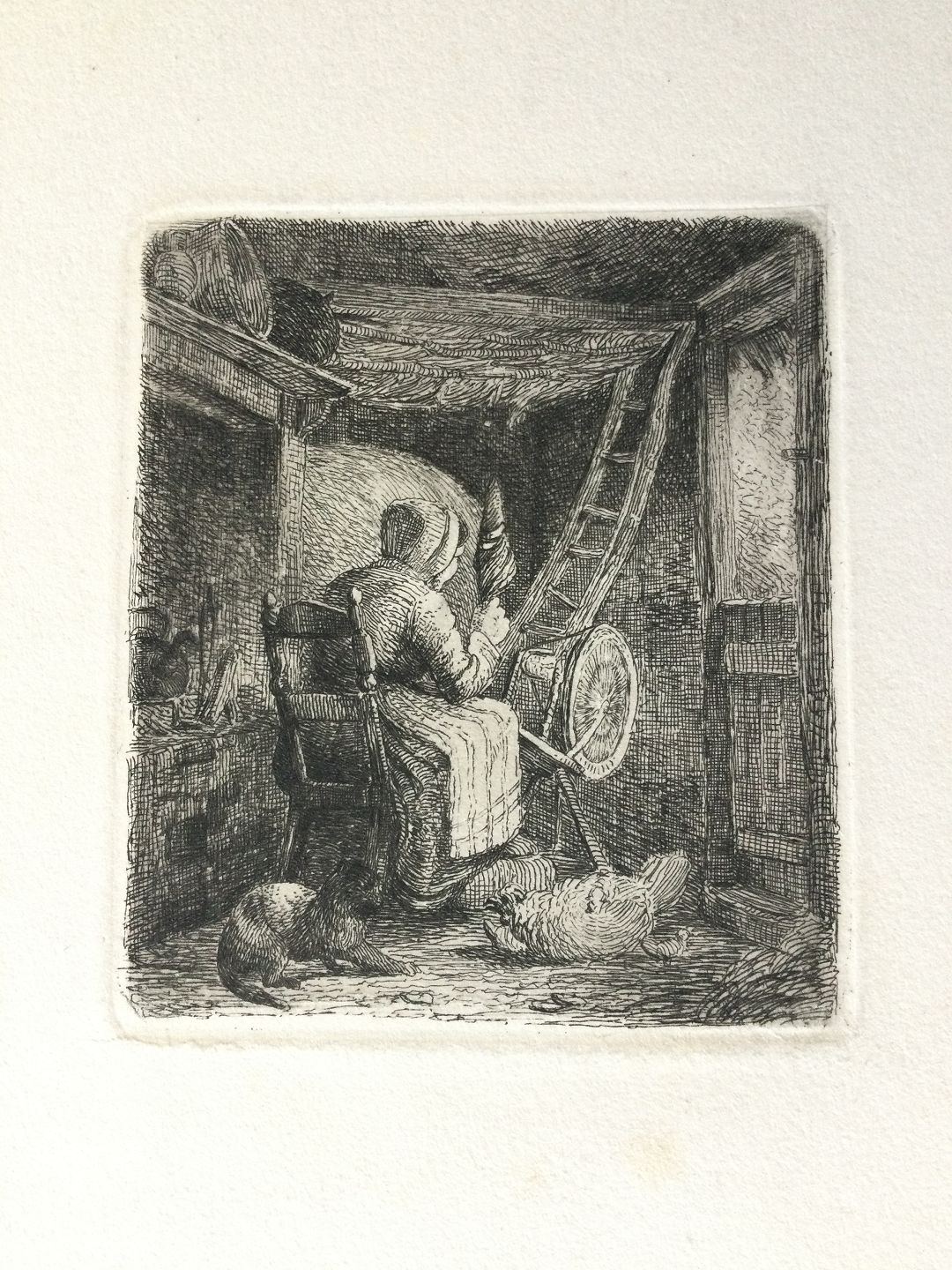 Text available in Danish: Radering fra DDRF af Johannes Vilhelm Zillen 1850'erne - En bondekone i sit køkken.