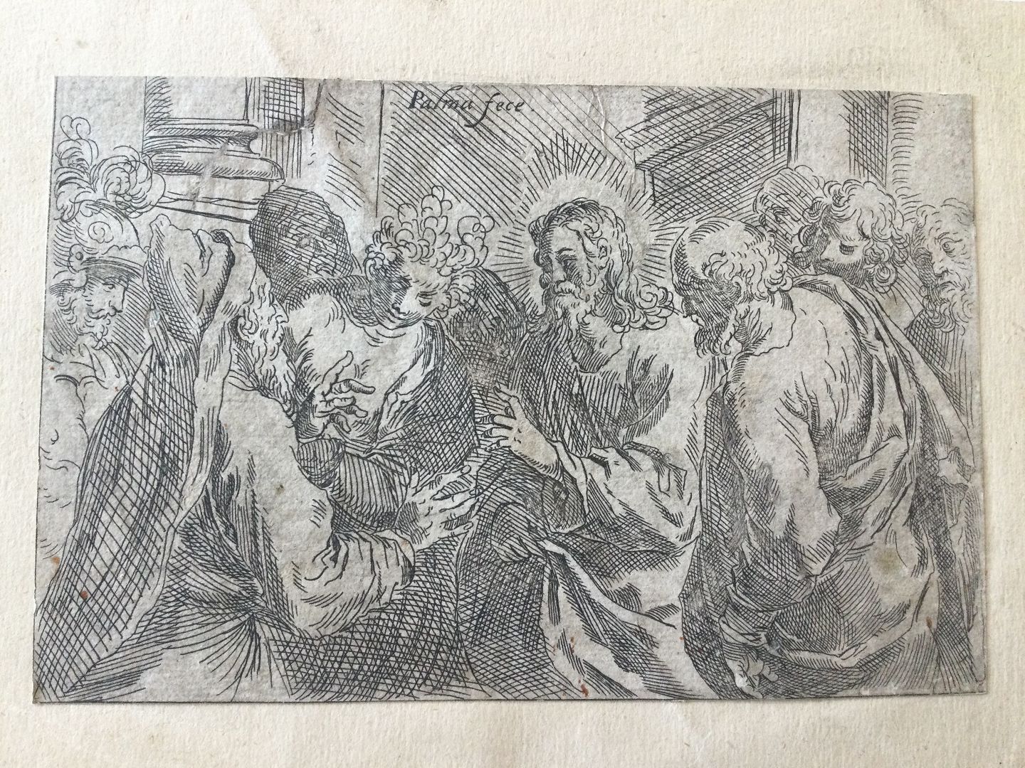 Text available in Danish: Kobberstik af Jacopo Palma den Yngre - Kristus og kvinden taget i ægteskabsbrud 1611.