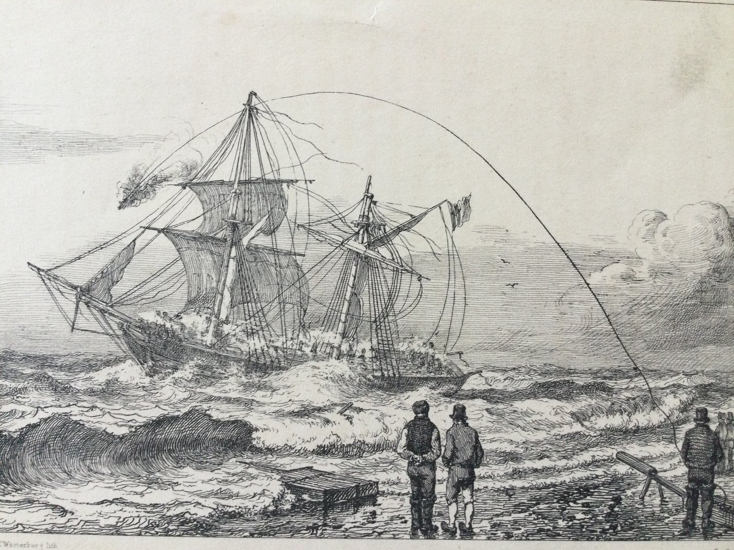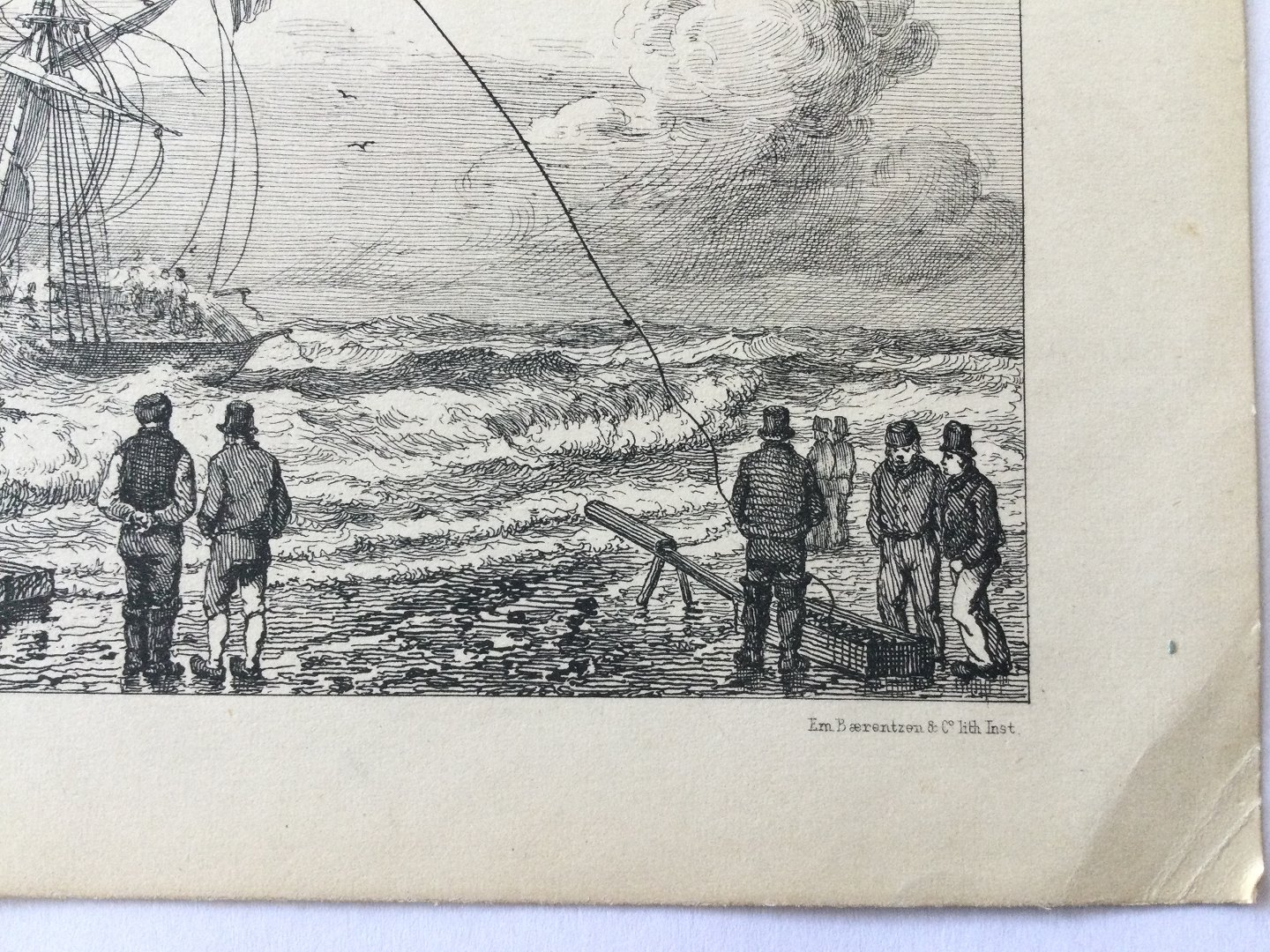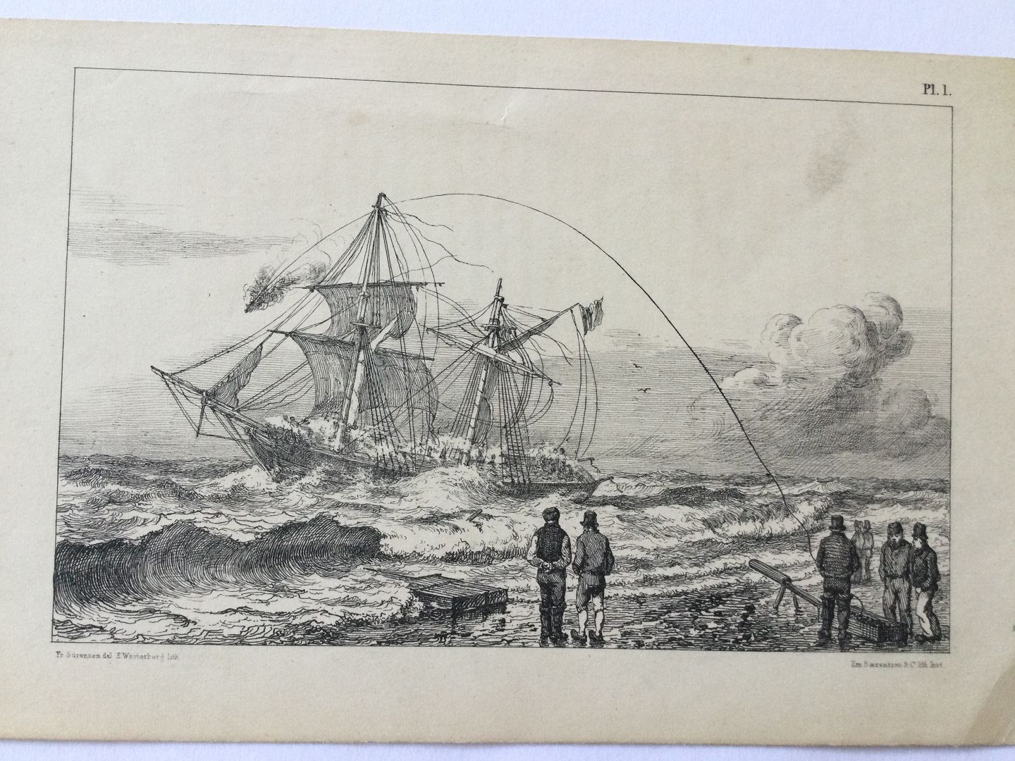 Text available in Danish: Litografi af Edvard Westerberg - Et Skibbrud.