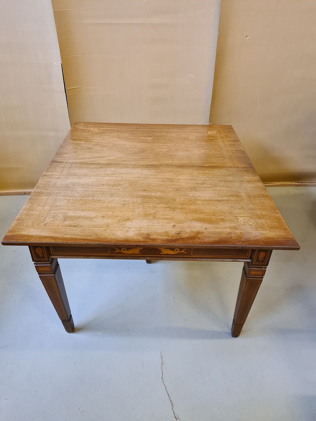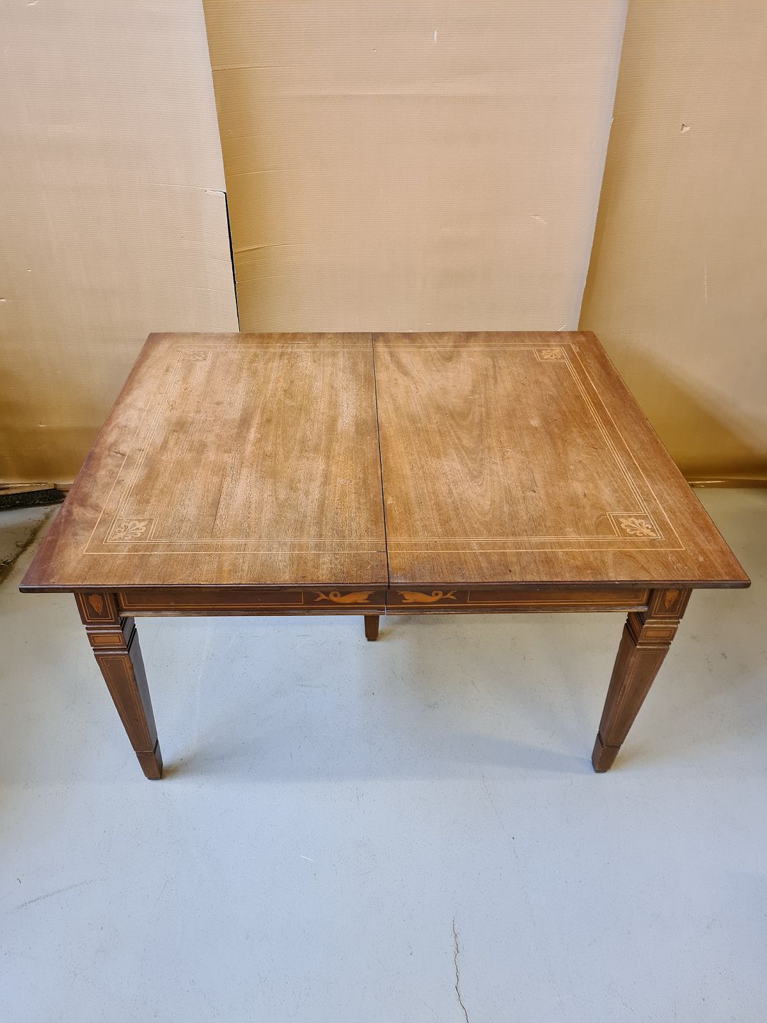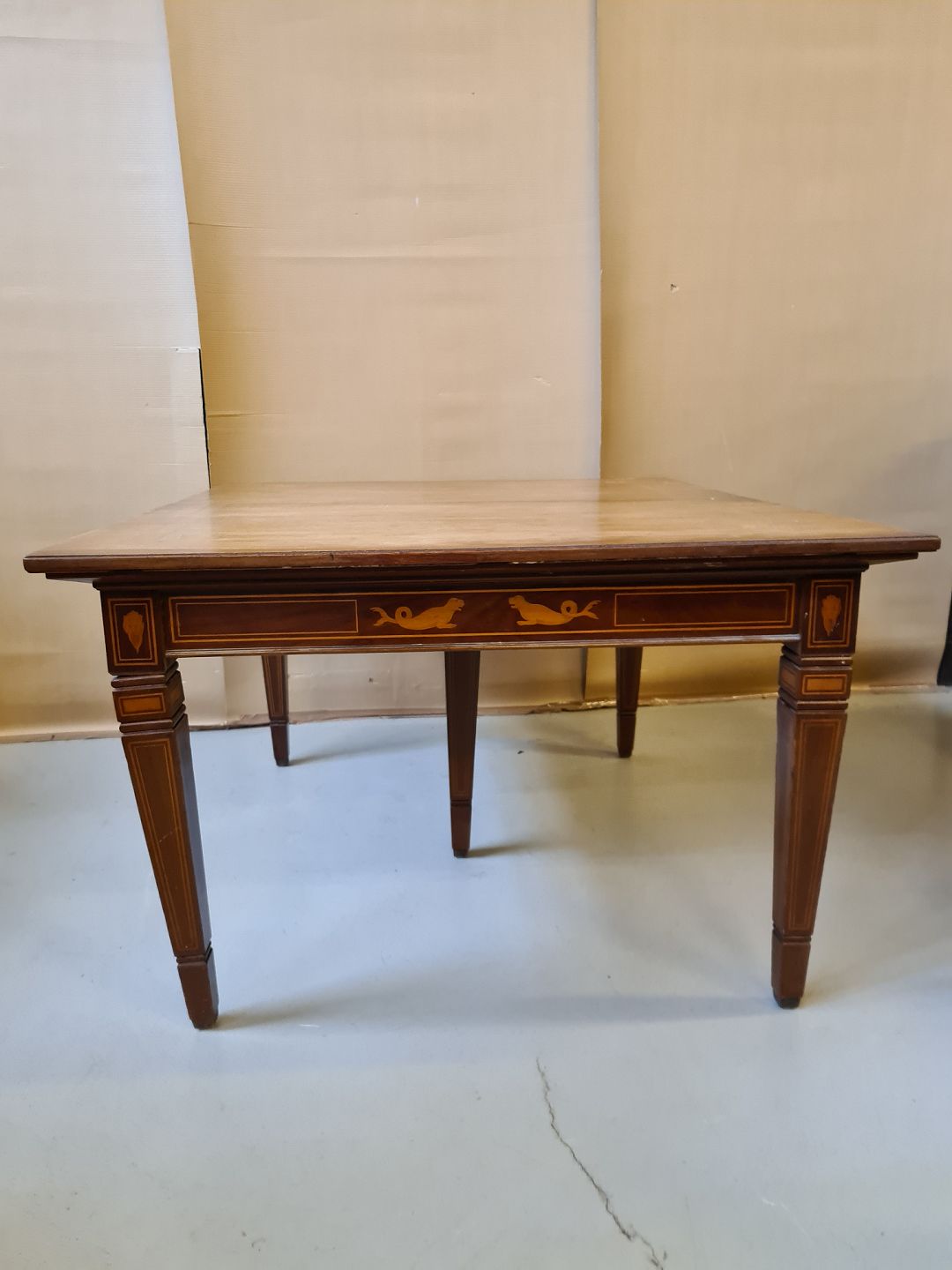 Spisebord i empirestil med intarsia af massivt mahogni fra 1910erne.