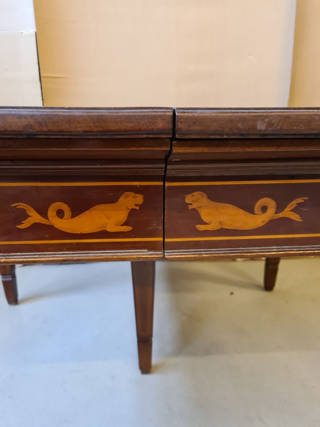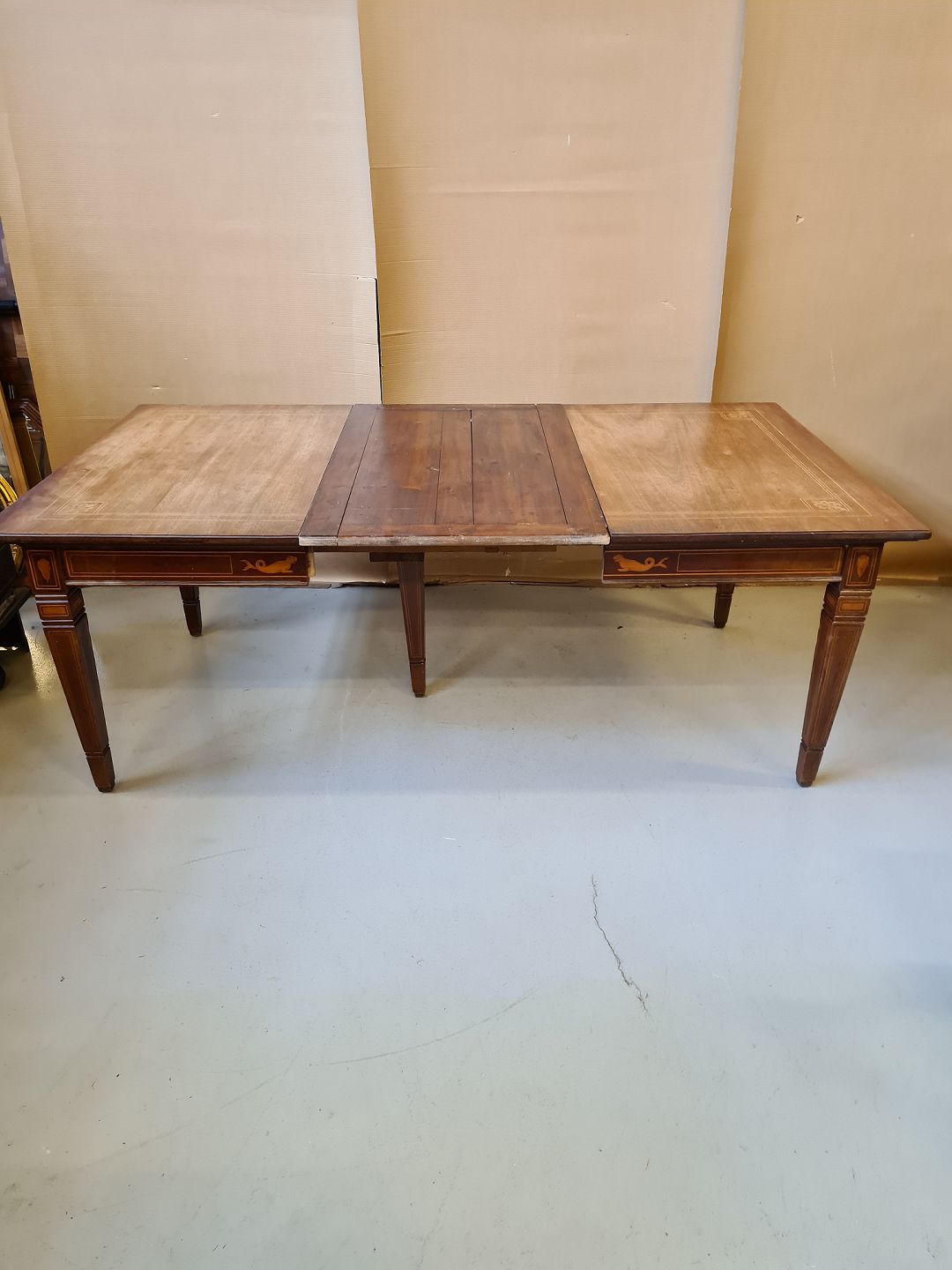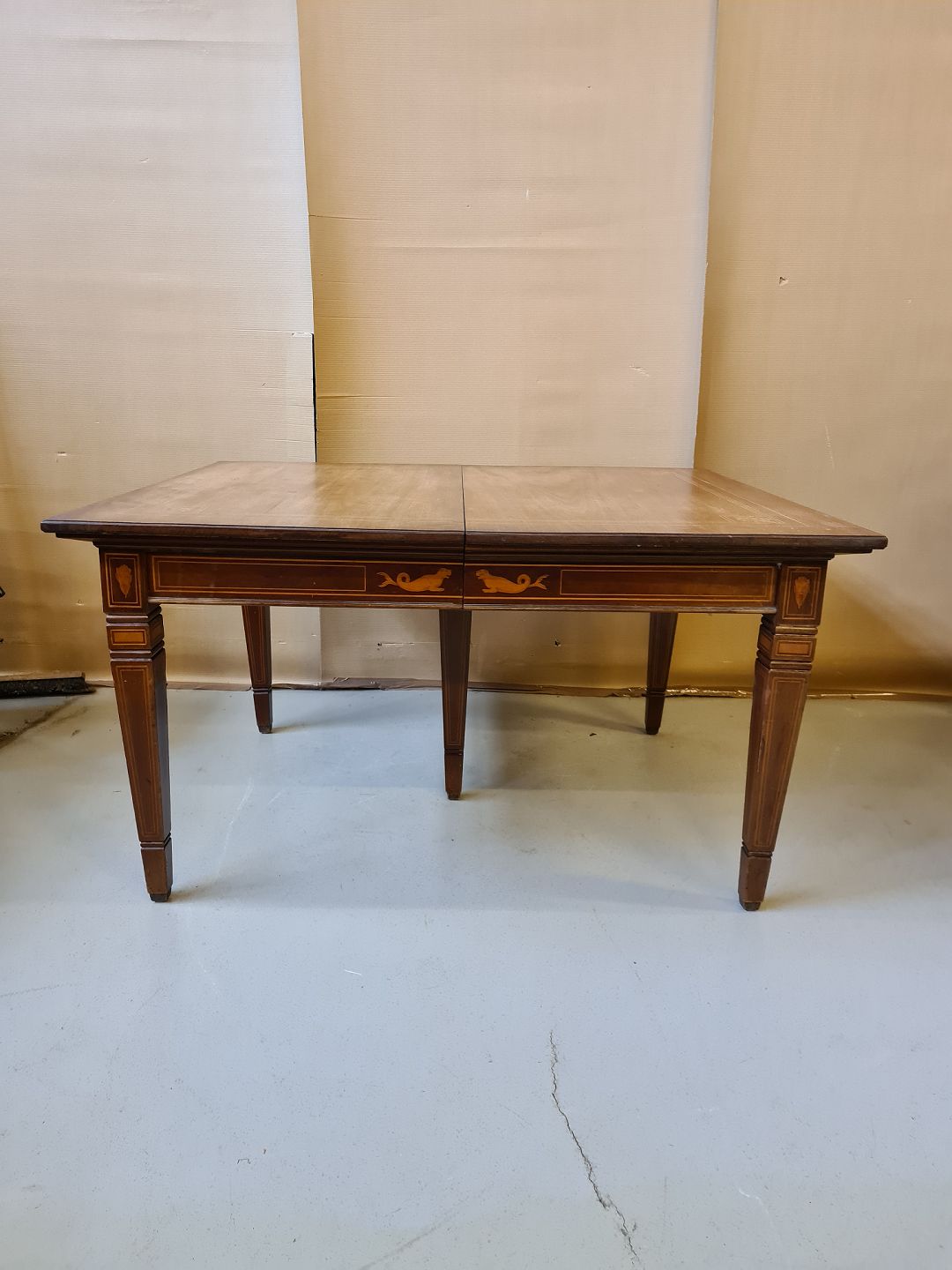 Spisebord i empirestil med intarsia af massivt mahogni fra 1910erne.