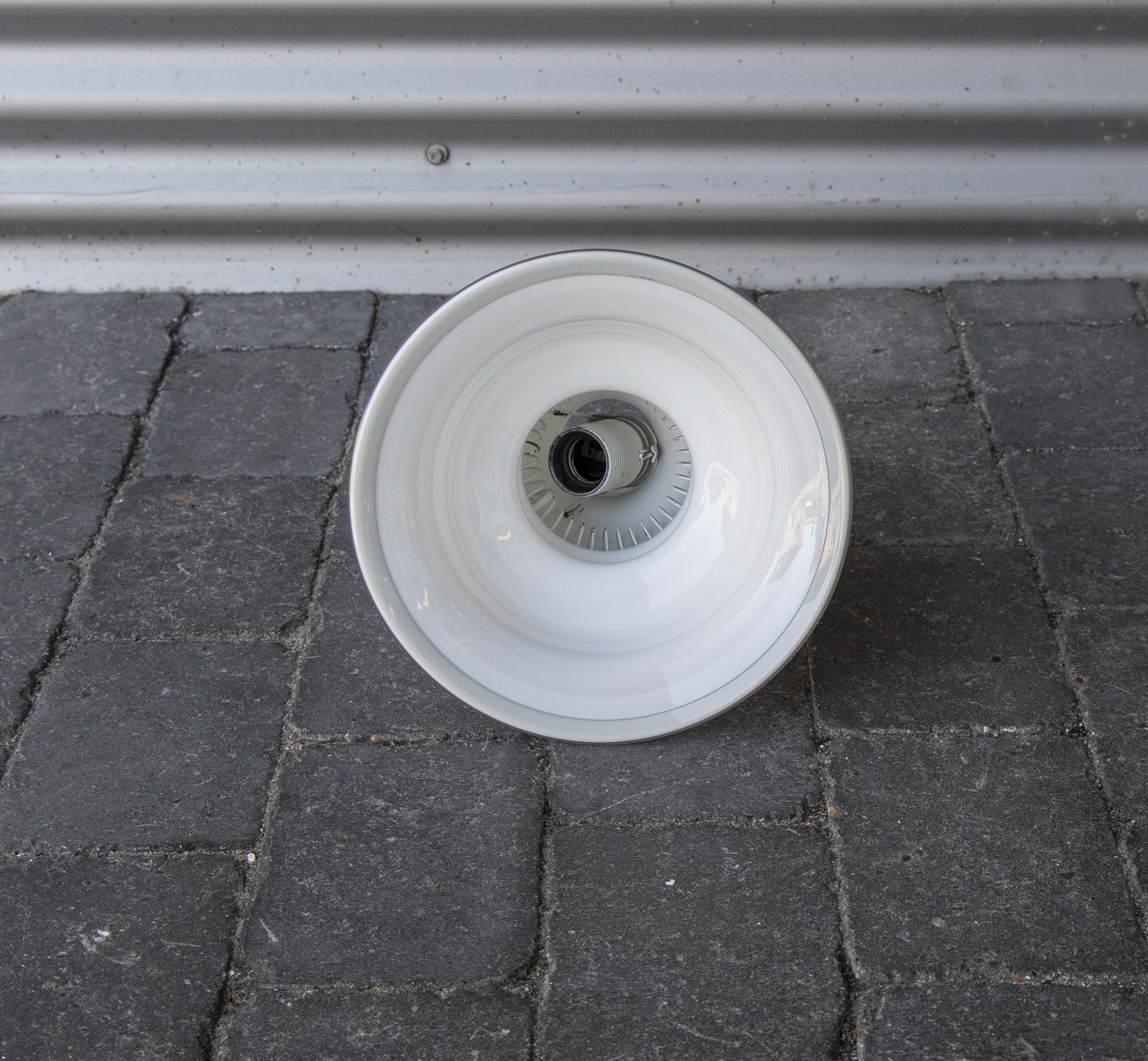 Loftslampe med skærm i lysegrå glas med opalhvid inderside