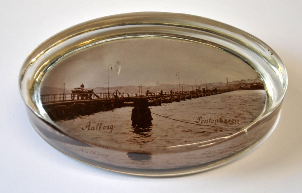 Glas brevpresse, 19. årh. Aalborg Pontonbro. Danmark.