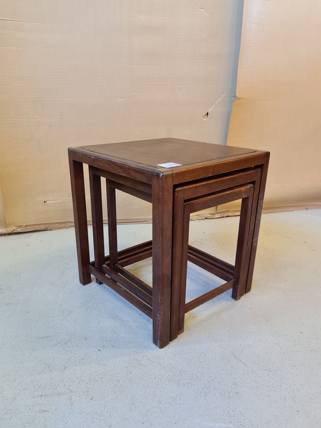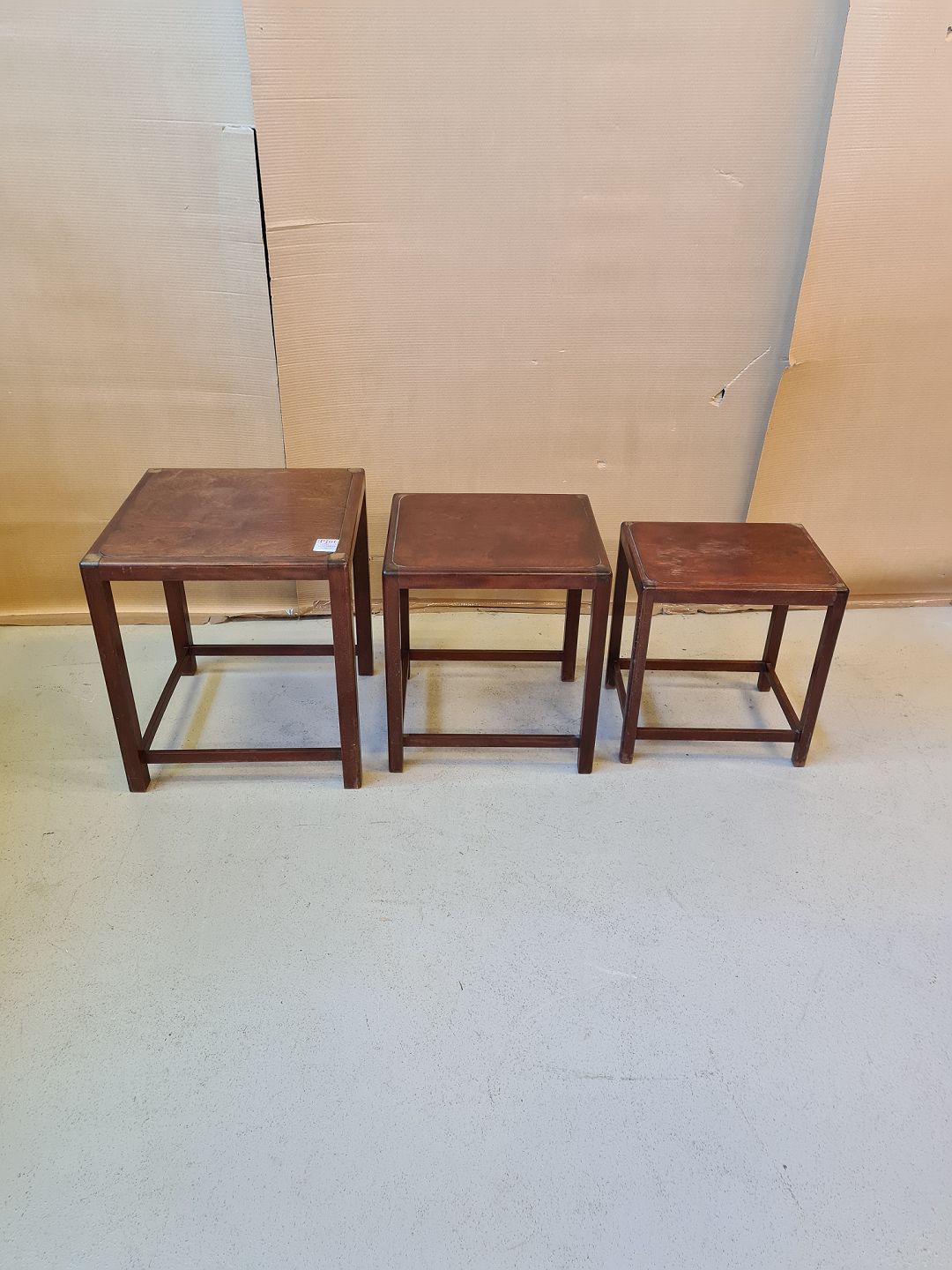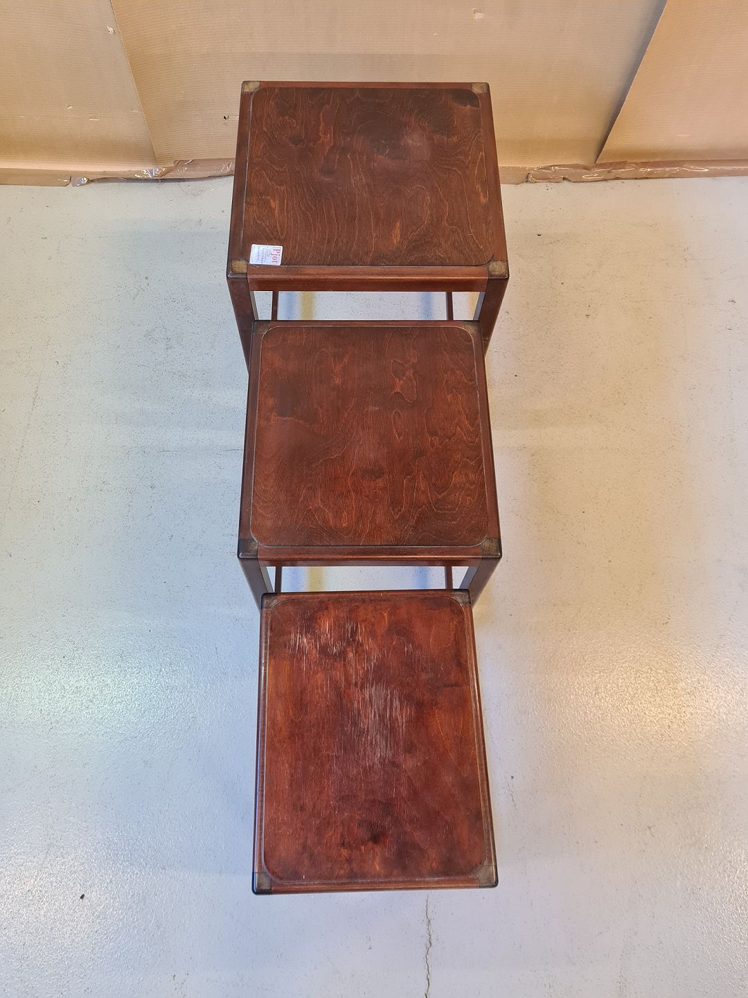 3 Inskudsborde i fineret og bejset bøgetræ fra 1960erne.