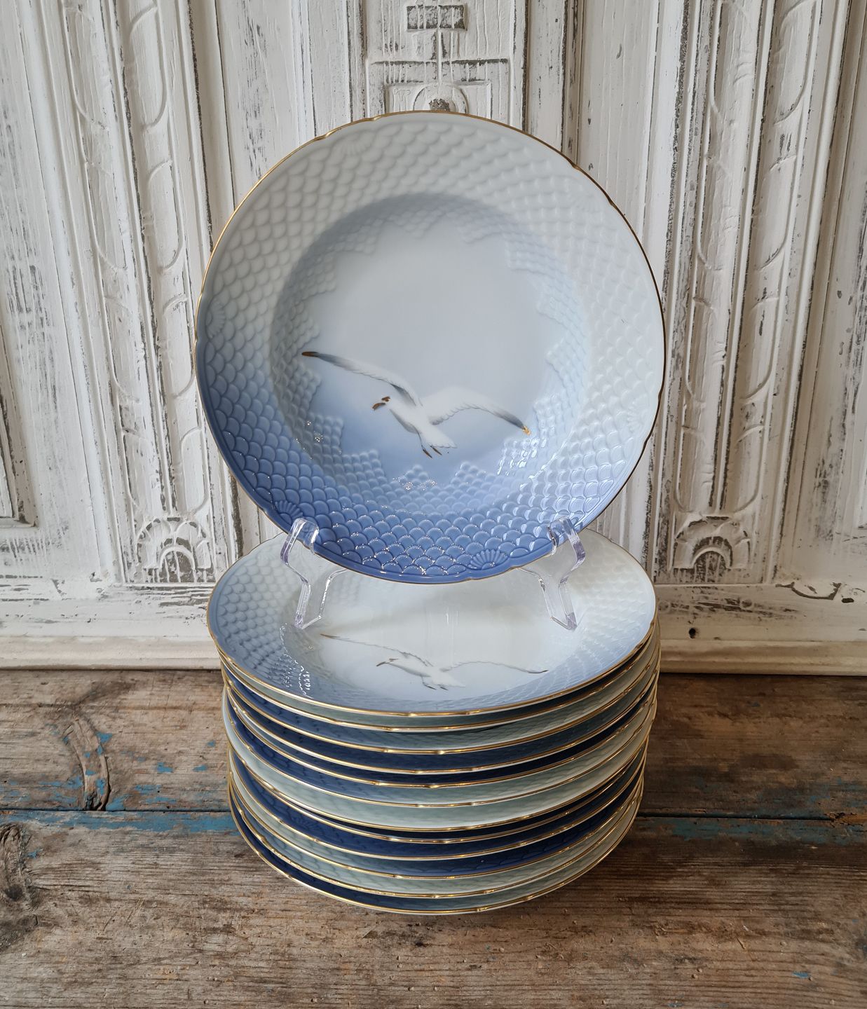B&G Mågestel med guldkant lille dyb tallerken no. 23 - 21 cm.