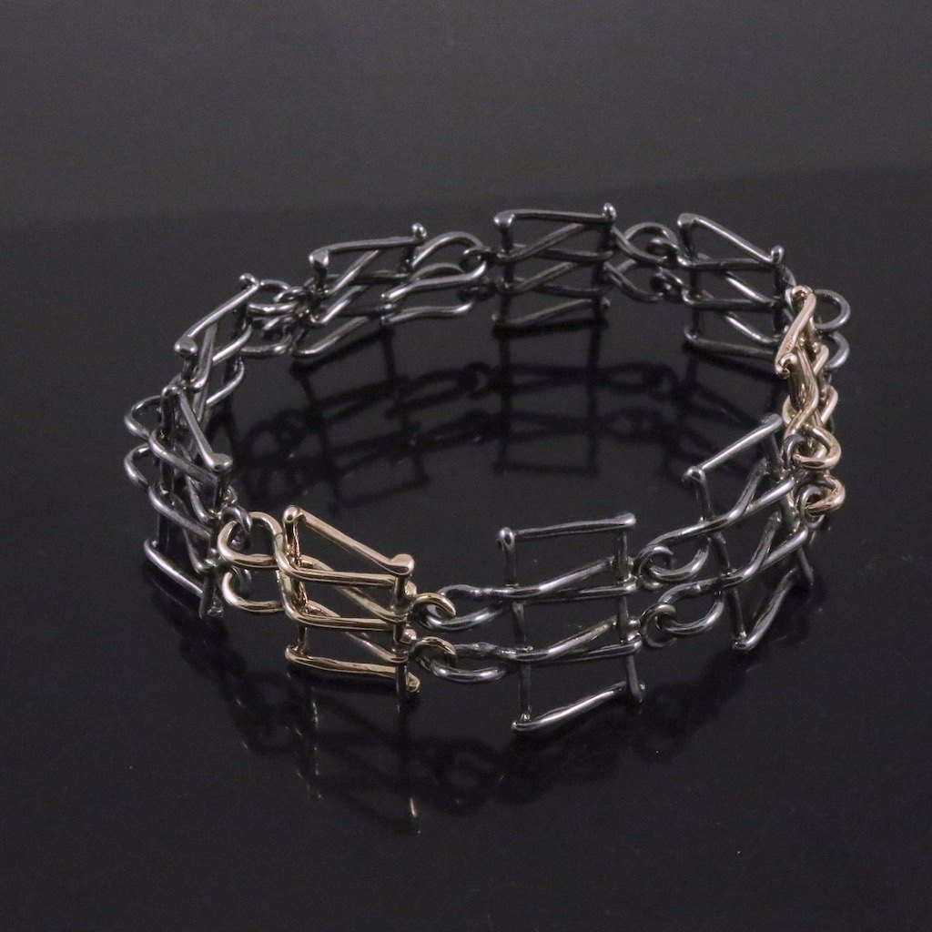 Toftegaard. 'Space' Armbånd i oxideret sterlingsølv og 14k guld. #9.