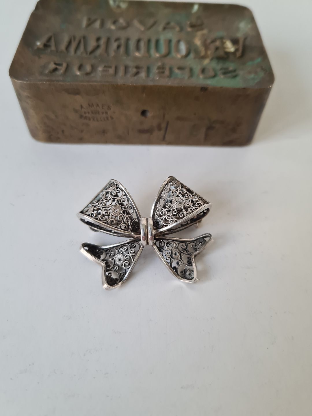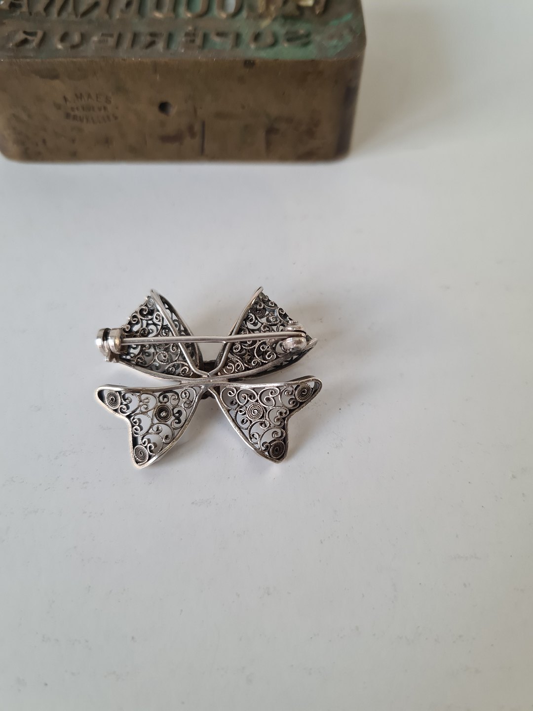 Filigran sløjfebroche i sølv