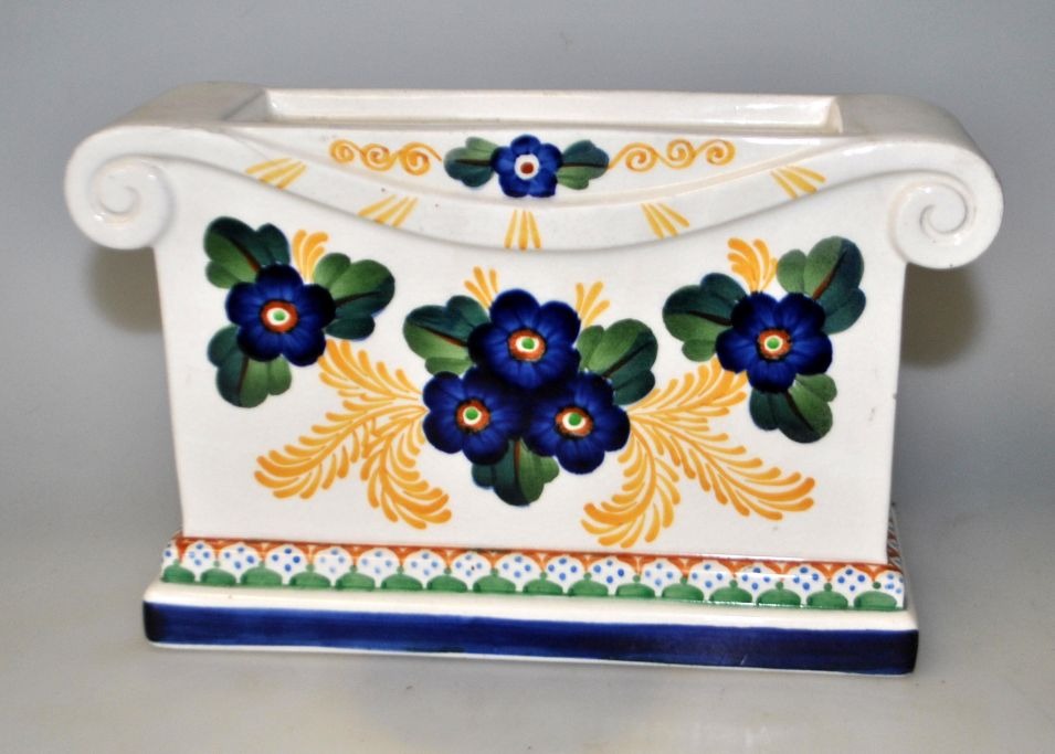 Aluminia jardiniere, 625/472, 20. årh. København, Danmark. Polykrom dekoreret fajance. Rektangulær. Stemplet. 22,5 x 8 x 14 cm.