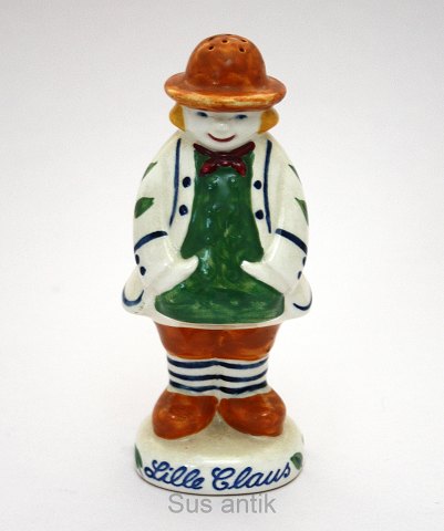 Aluminia, Lille Claus Peberbøsse Nr. 2586. Formgivet af Herluf Jensenius (JUS) og Hans Henrik Hansen (FS) i 1948. Højde 12,5 cm. Der er 2 højder på Lille Claus og Store Claus figurerne de store udkom i 1945 og denne er den lille. Lettere overfladekrakelering og god stand. Pris: 800 kr.