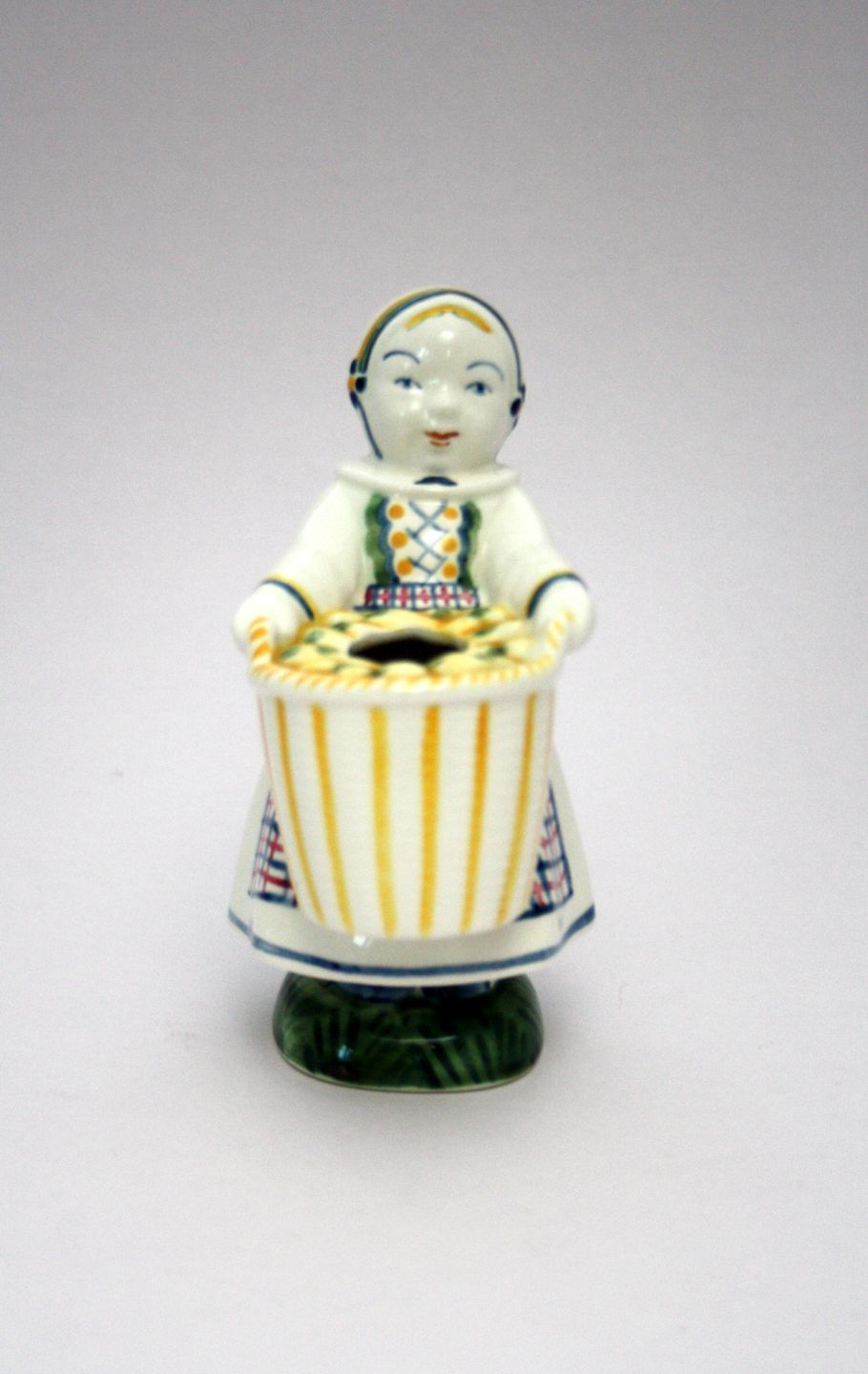 Aluminia, Børnehjælpsdag figur Kusine fra Amager 1943. Designet af Herluf Jensenius formgivet af Hans Henrik Hansen. Højde 13 cm. Lettere overfladekrakelering. Pris: 425 kr. pr. stk. Lager: 2
