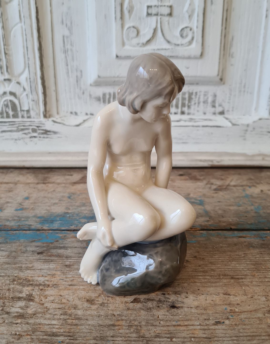 Royal Copenhagen figur - Nøgen pige på sten