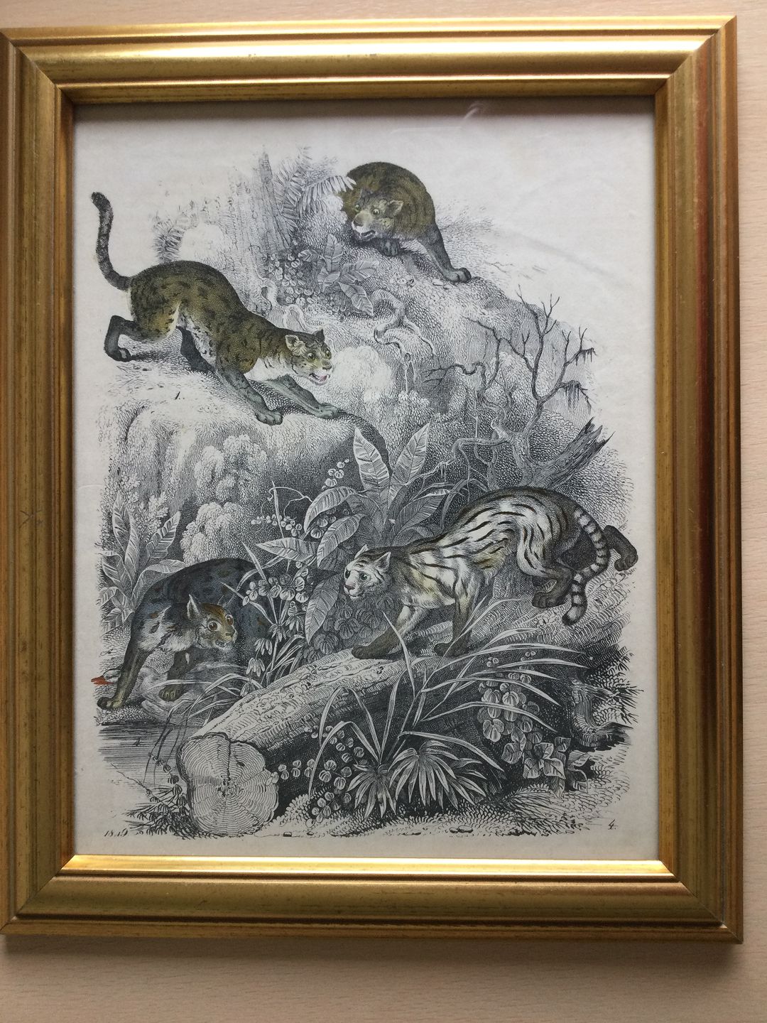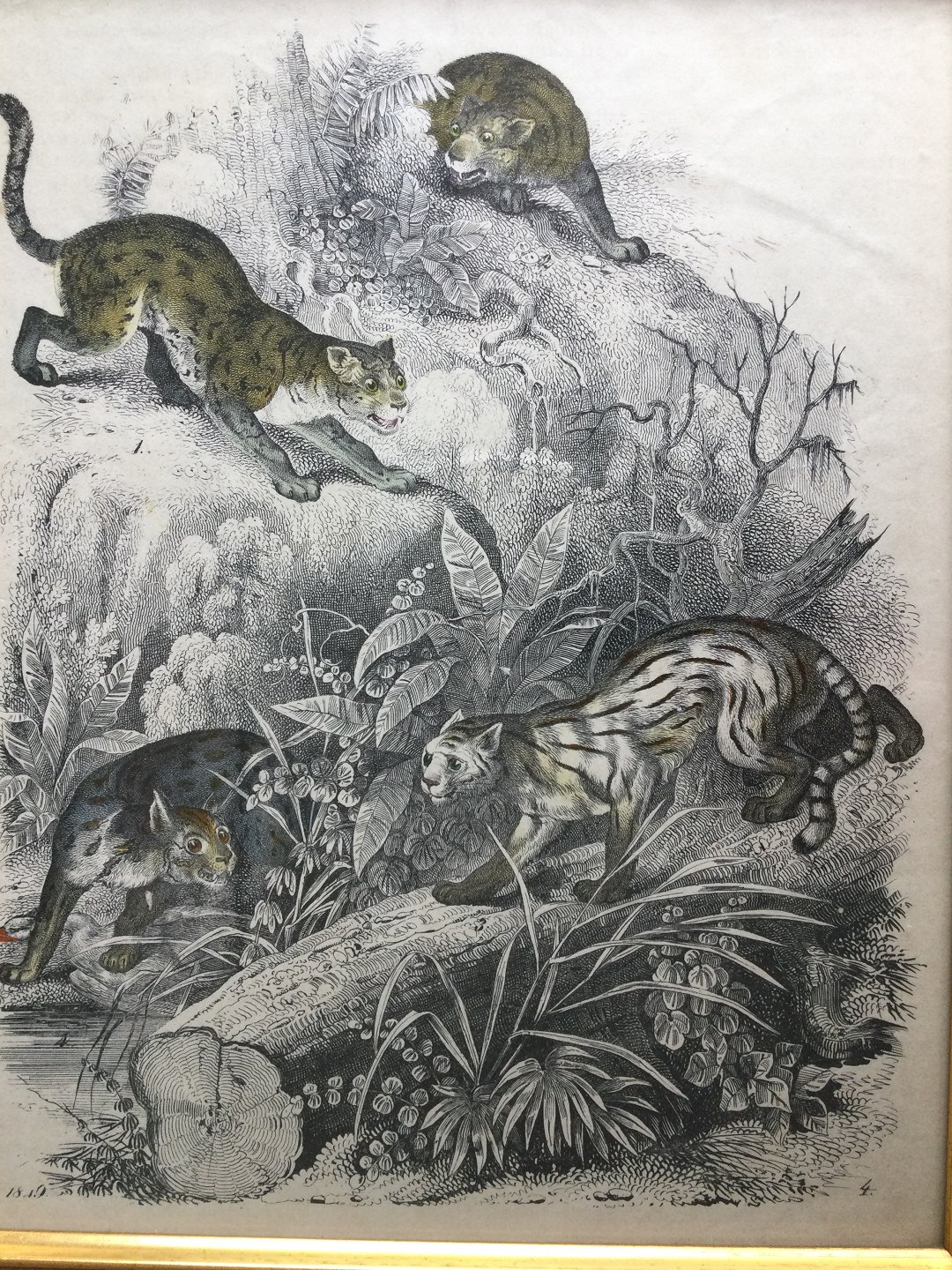 Text zugänglich auf Dänische: Håndkoloreret litografi 1849 - 4 rovdyr af kattefamilien.