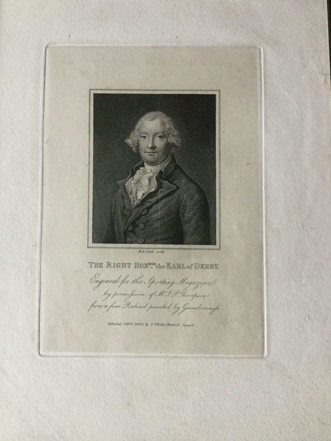 Betegnet - "The Right Honble, the Earl af Derby" 1808.