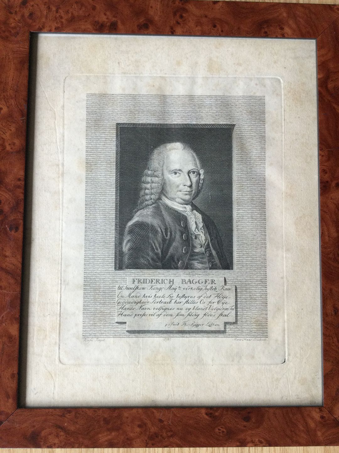 Kobberstik af Meno Haas - Portræt af Godsejer Frederik Bagger til Juulskov 1783.