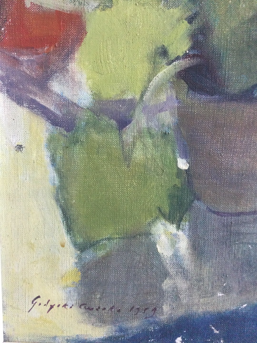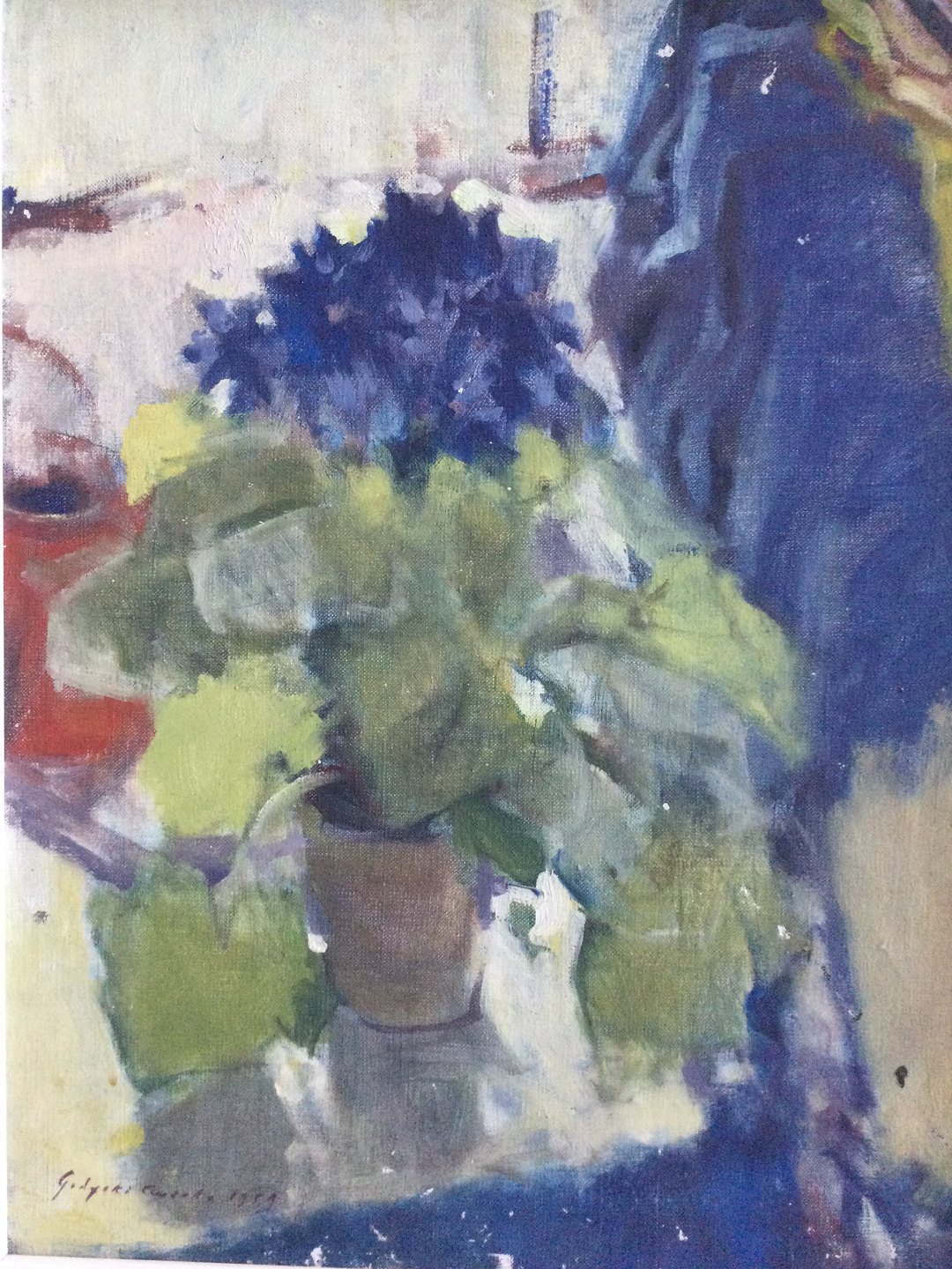 Maleri af Dimitri Godycki-Cwirko 1959 - Potteplante på karm.