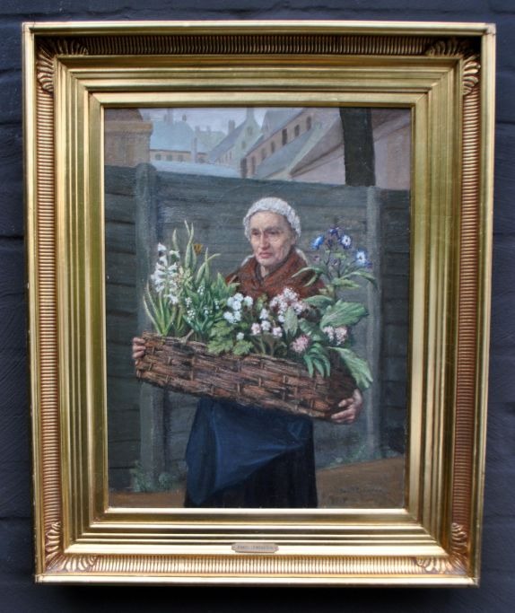Lewenstein, Daniel (1860 - efter 1924) Holland: En blomstersælgerske. Olie på lærred/plade. Signeret Mrt 94. Kyswijk. 48 x 36 cm.