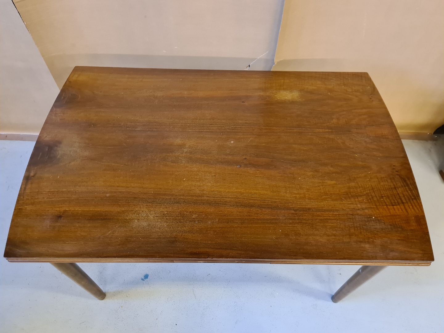 Spisebord i fineret nødetræ med hollandsk udtræk fra 1960erne.