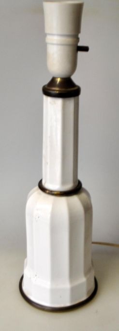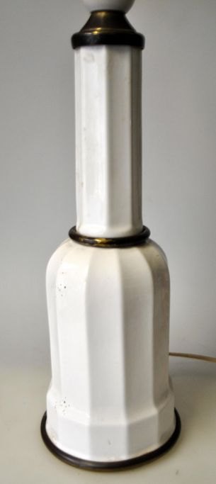 Heiberg lampe i hvidt porcelæn, 20. årh. Med messing. Højde til el montering: 29 cm.