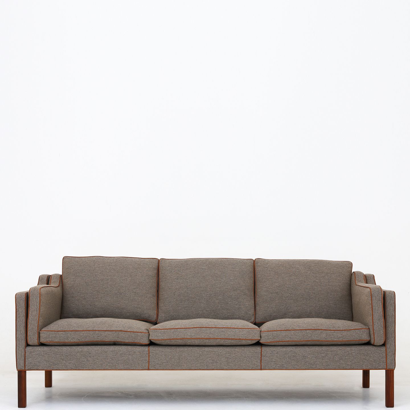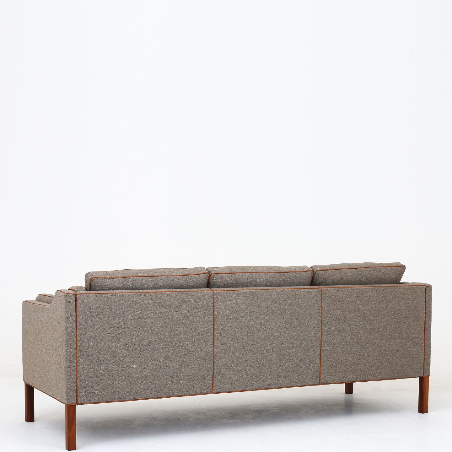 BM 2213 - 3 pers. sofa i nyt tekstil (Hallingdal 65, farvekode 227) med keder i anilinlæder (Klassik Cognac). KLASSIK tilbyder sofaen i tekstil og læder efter eget valg. Kontakt os venligst for mere information.