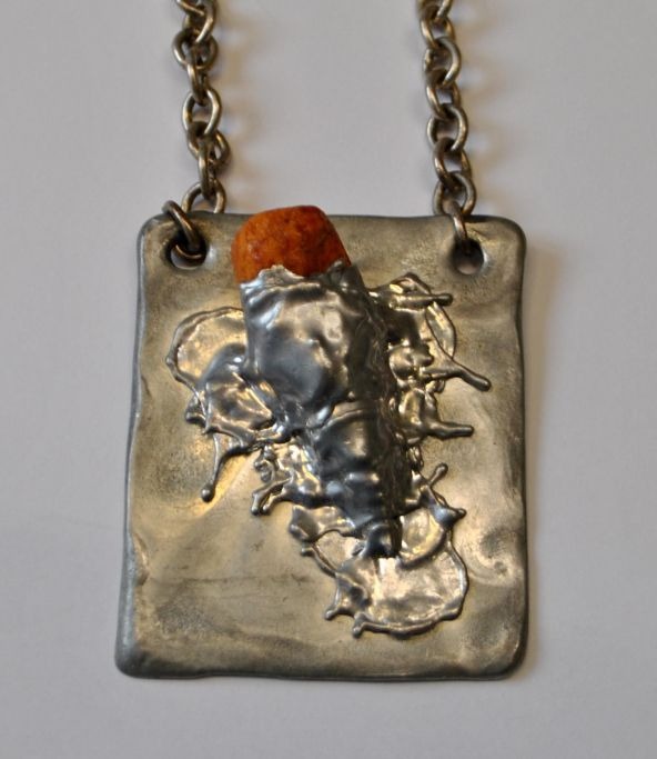 Tin vedhæng med rav, 1970'erne. Danmark.