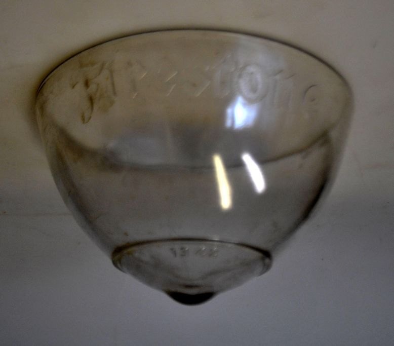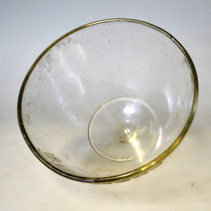 Sjælden latex gummi opsamler kop af glas, 1942 fra Firestone Plantagen, Liberia. H. 8,5 cm. Dia: 13,2 cm