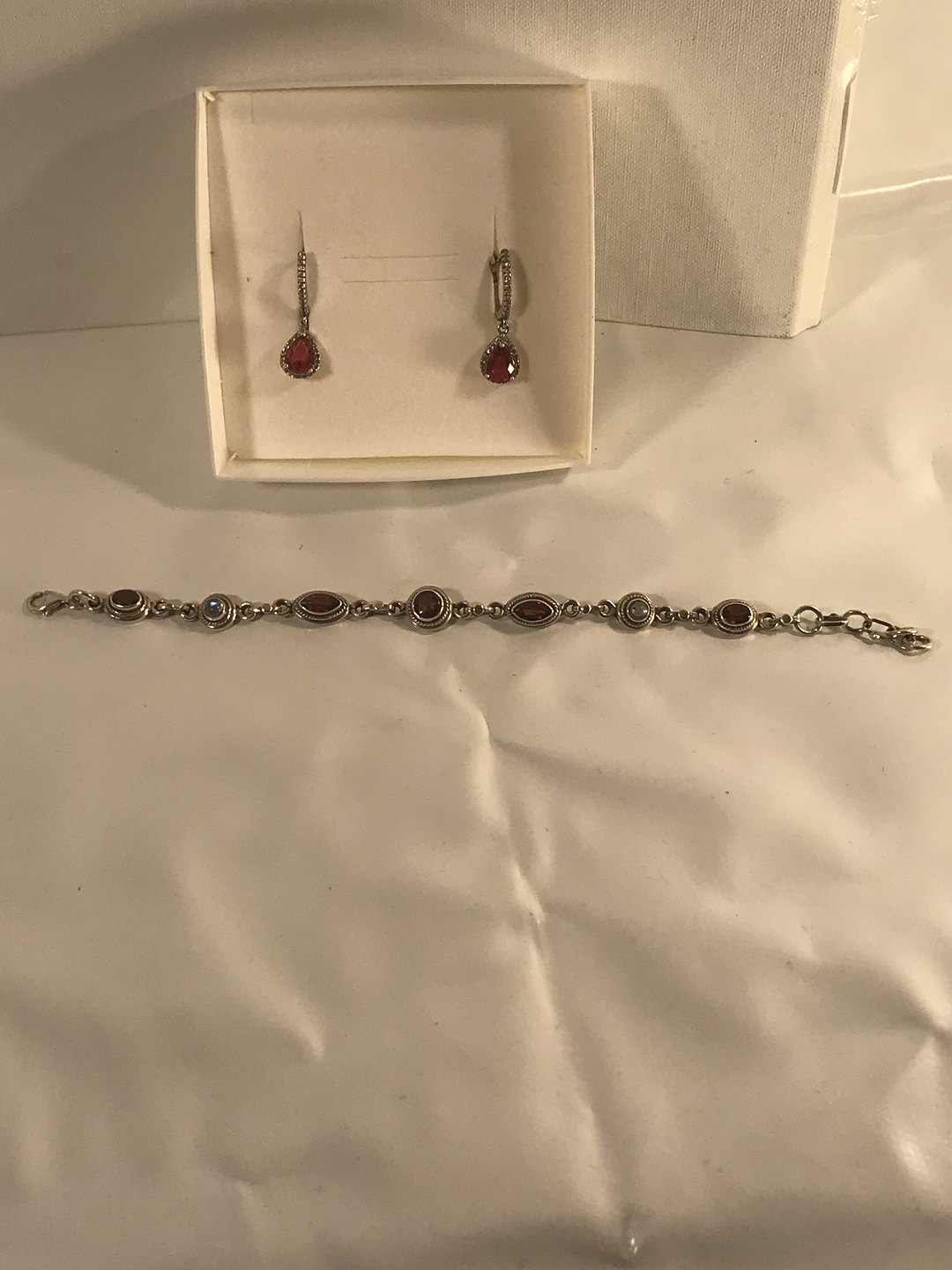 S. sølv 925 kt armbånd , ørering med ægtesten gtanater , månesten . længe 19 cm